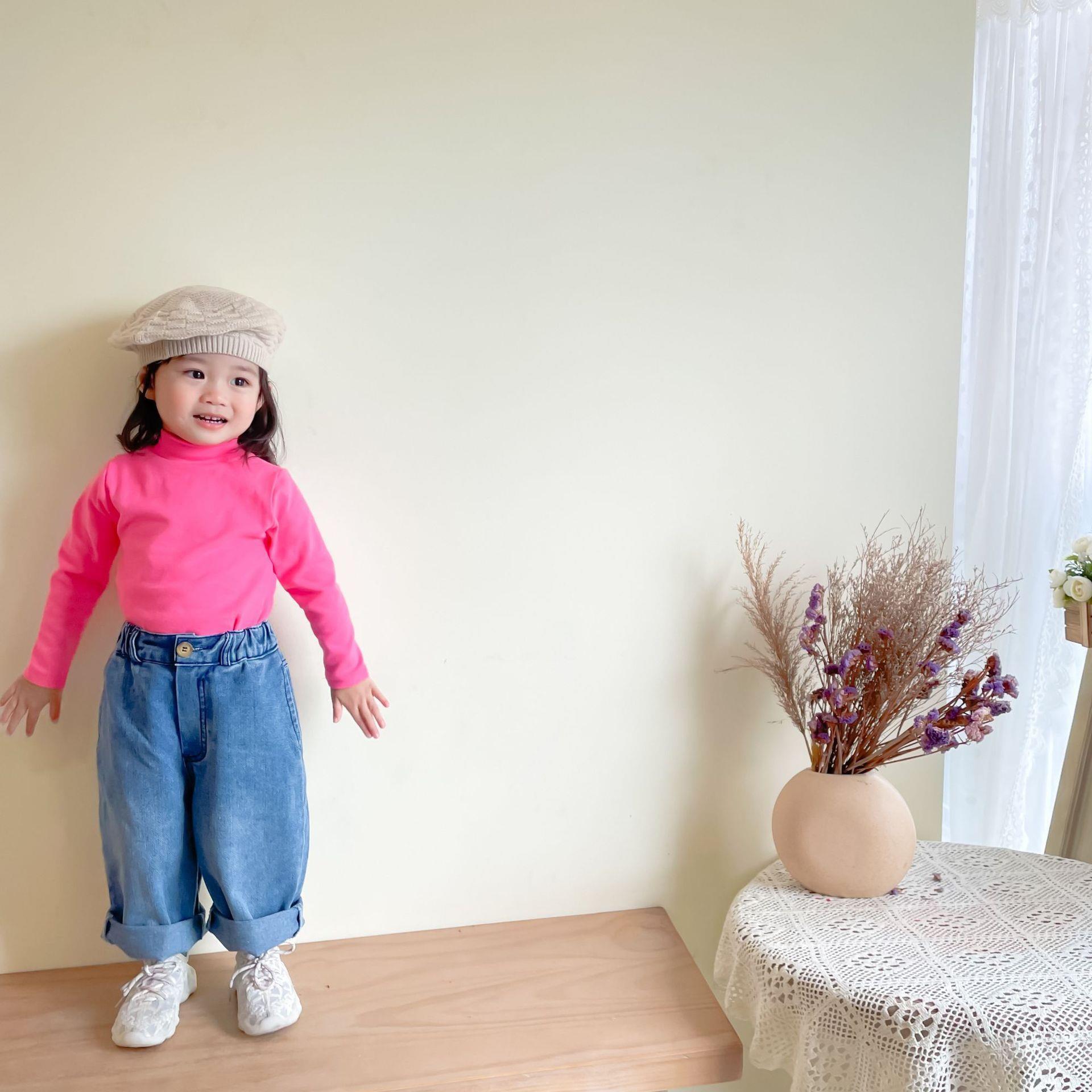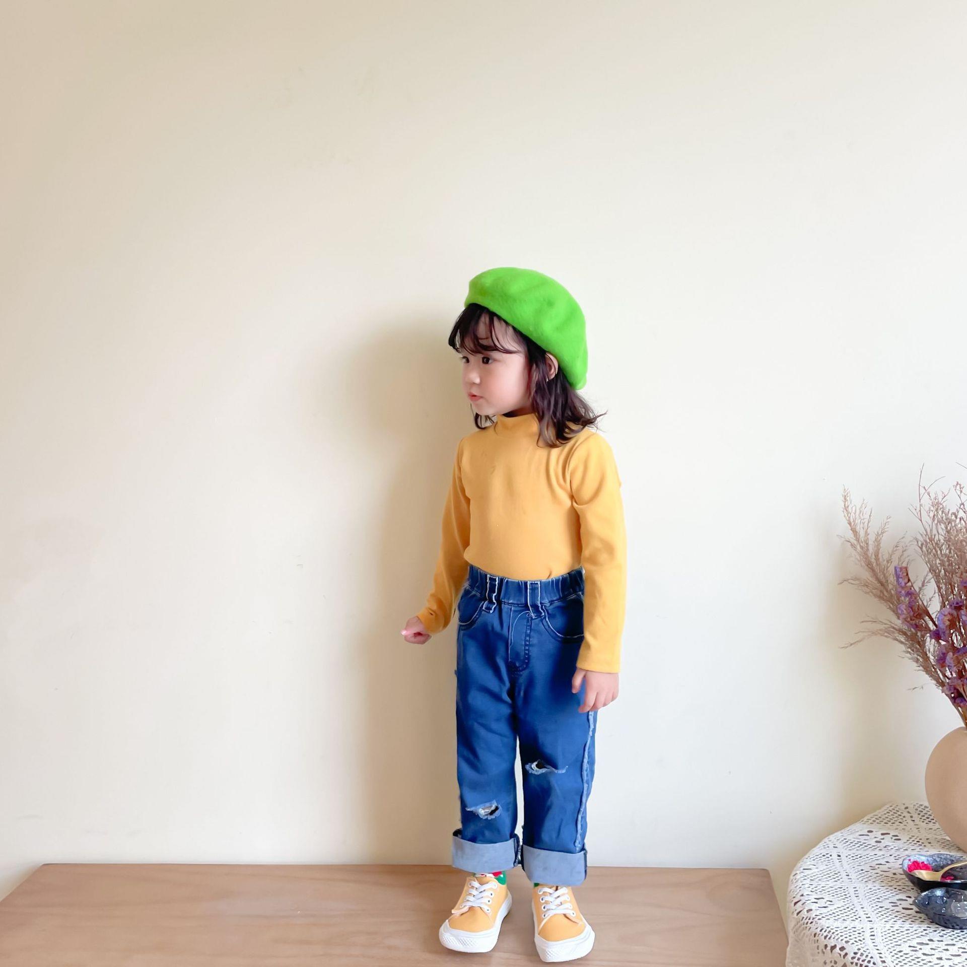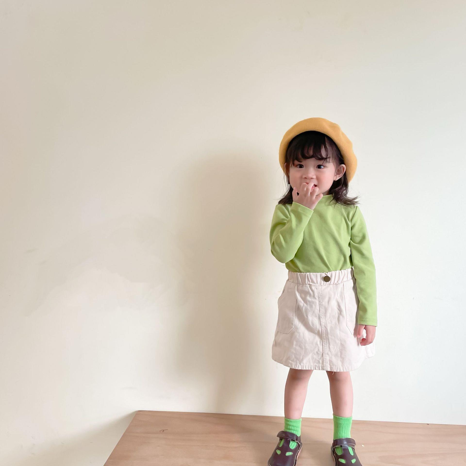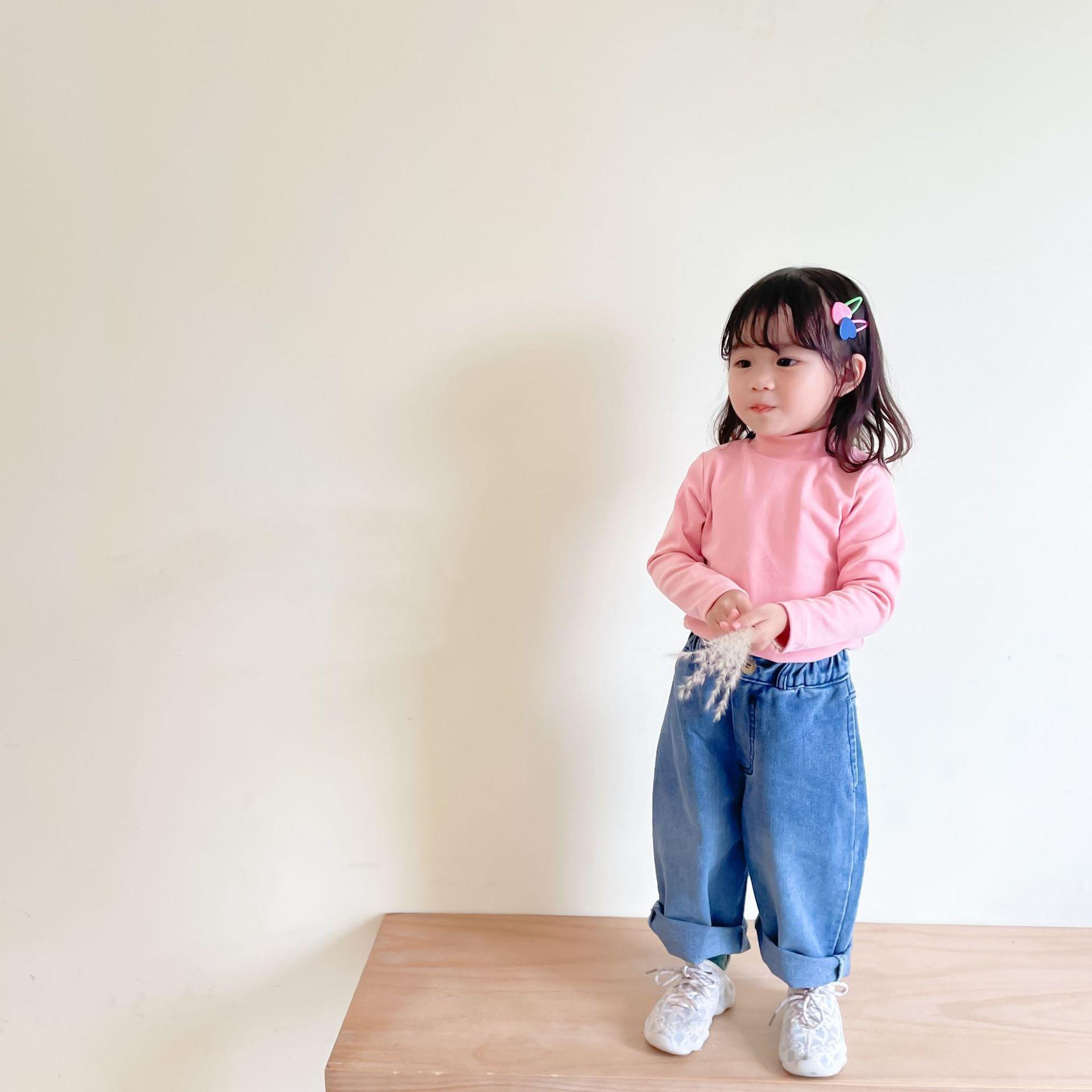 2022 가을 겨울 여아 중간 칼라 베이스 셔츠 남성 아기 한국 단색 하프 하이 칼라 브러시 긴 소매 따뜻한 탑 새로운스토어 가기