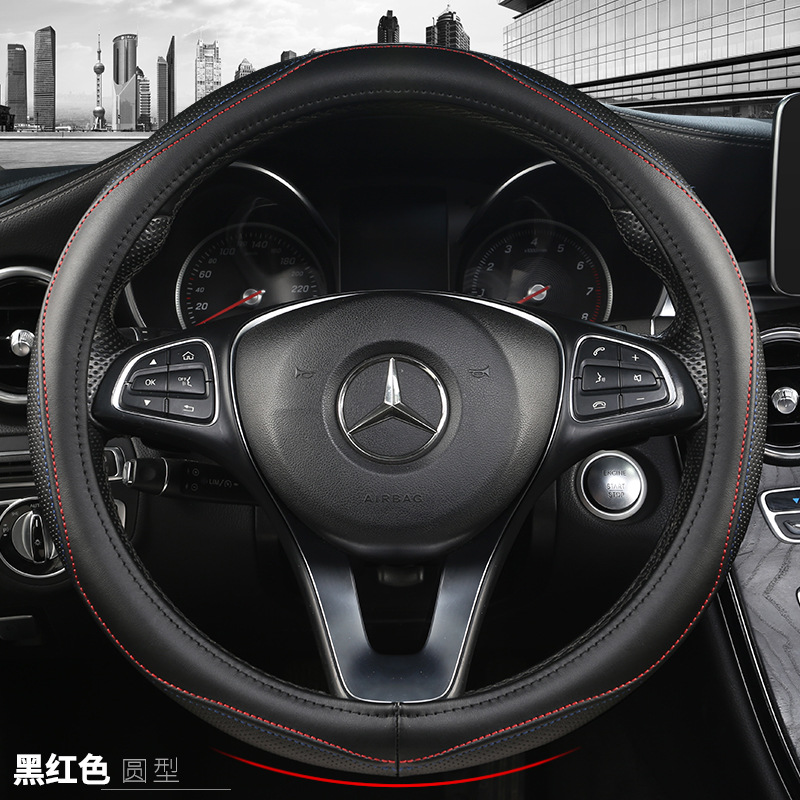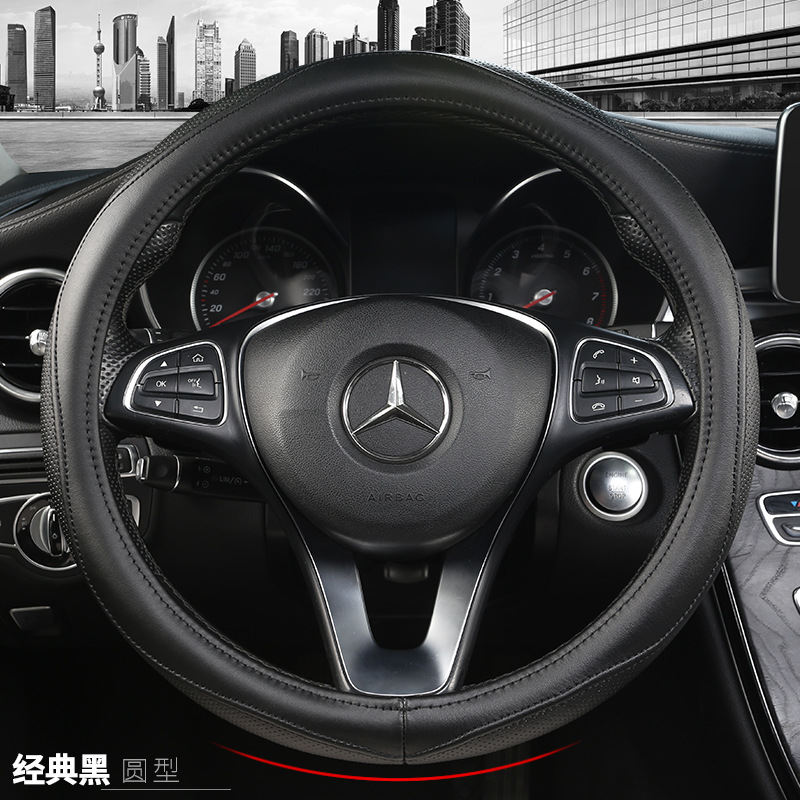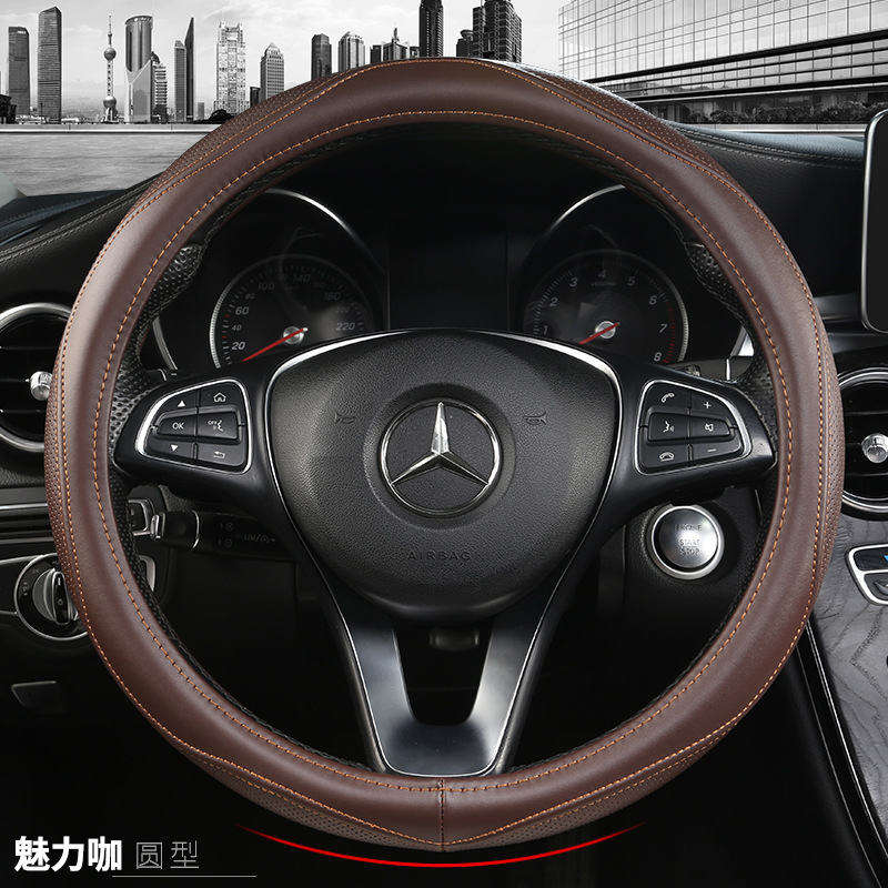 자동차 스티어링 휠 커버 자동차 가죽 스티어링 커버 SUV 사계절 유니버설 여름 땀 흡수성 미끄럼 방지 정품 가죽 핸들 커버스토어 가기