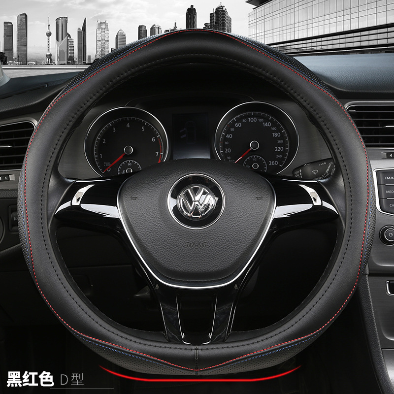 자동차 스티어링 휠 커버 자동차 가죽 스티어링 커버 SUV 사계절 유니버설 여름 땀 흡수성 미끄럼 방지 정품 가죽 핸들 커버