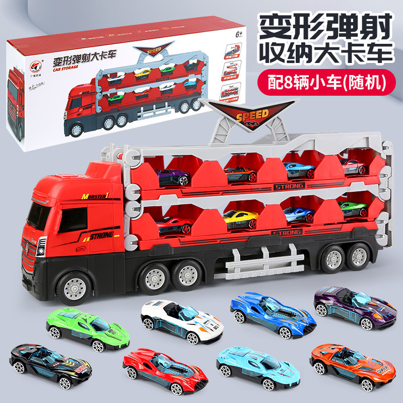 어린이 장난감 변형 배출 트럭 합금 자동차 모델 접이식 저장 운송업자 소년 변형 트럭스토어 가기