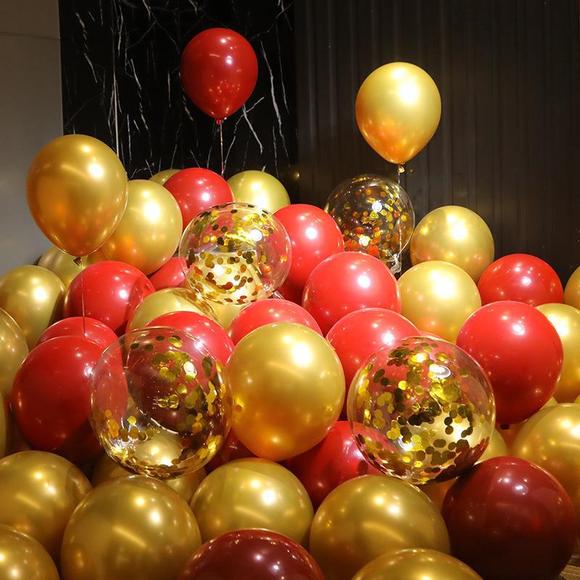 双层石榴红气球 金属气球 亮片气球套装结婚婚房布置婚庆用品批发