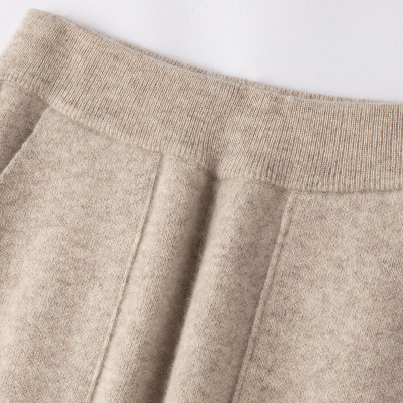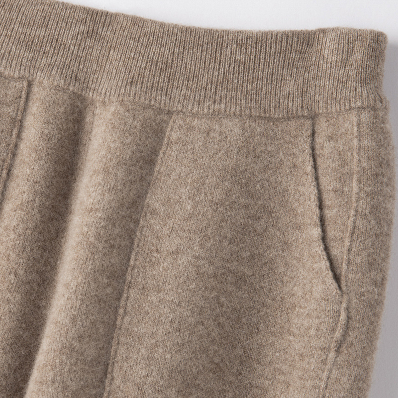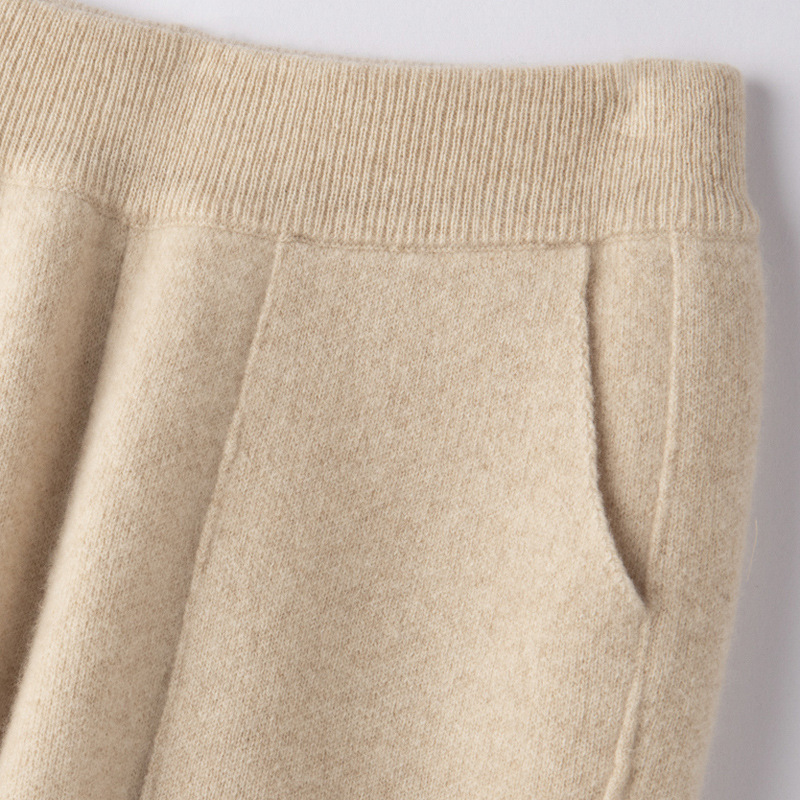 가을과 겨울 양모 바지 여성용 겉옷 느슨한 하이 허리 니트 캐주얼 바지 더블 포켓 꼬인 가장자리 캐시미어 바지