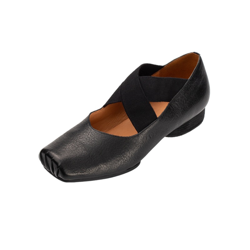 새로운 돼지 코 신발 정품 가죽 블랙 크로스 스트랩 여성 신발 편안한 플랫 힐 스트랩 영국 싱글 레이어 신발 스퀘어 토 여성
