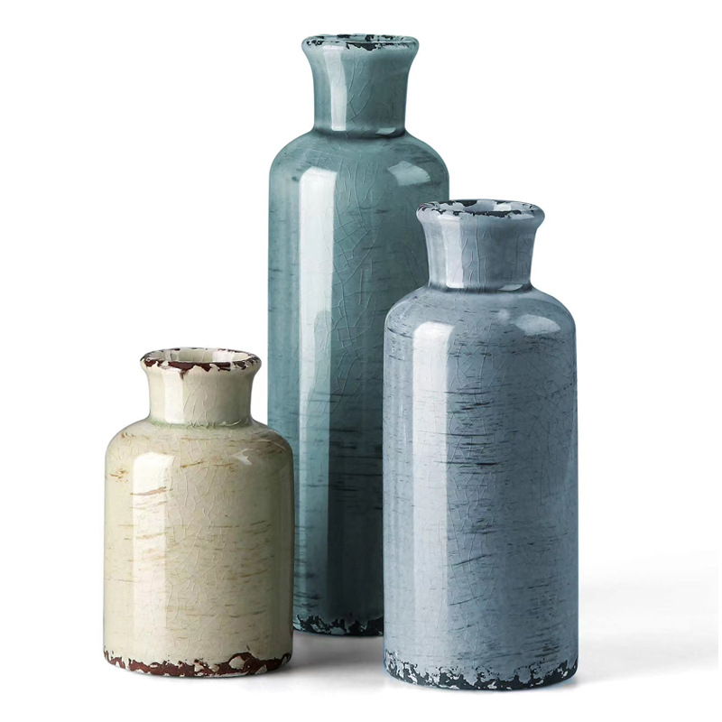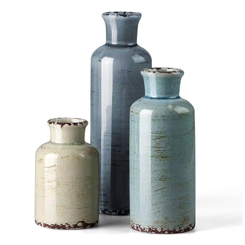 아마존 빈티지 세라믹 꽃병 균열 유약 3 조각 세트 꽃 장식품 홈 가구 꽃병 목회 꽃 삽입
