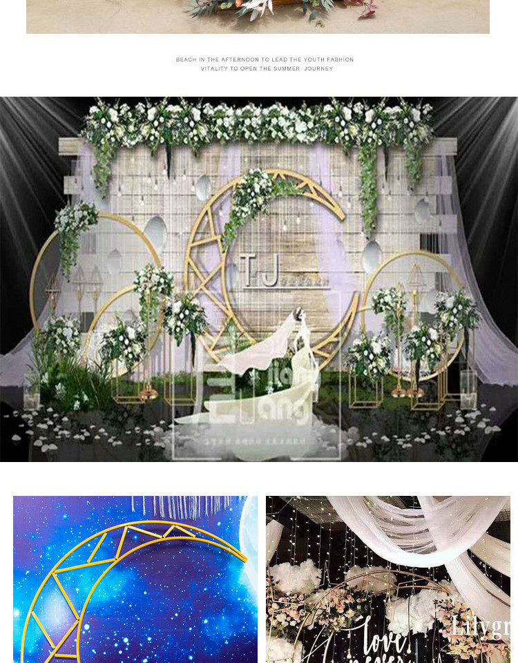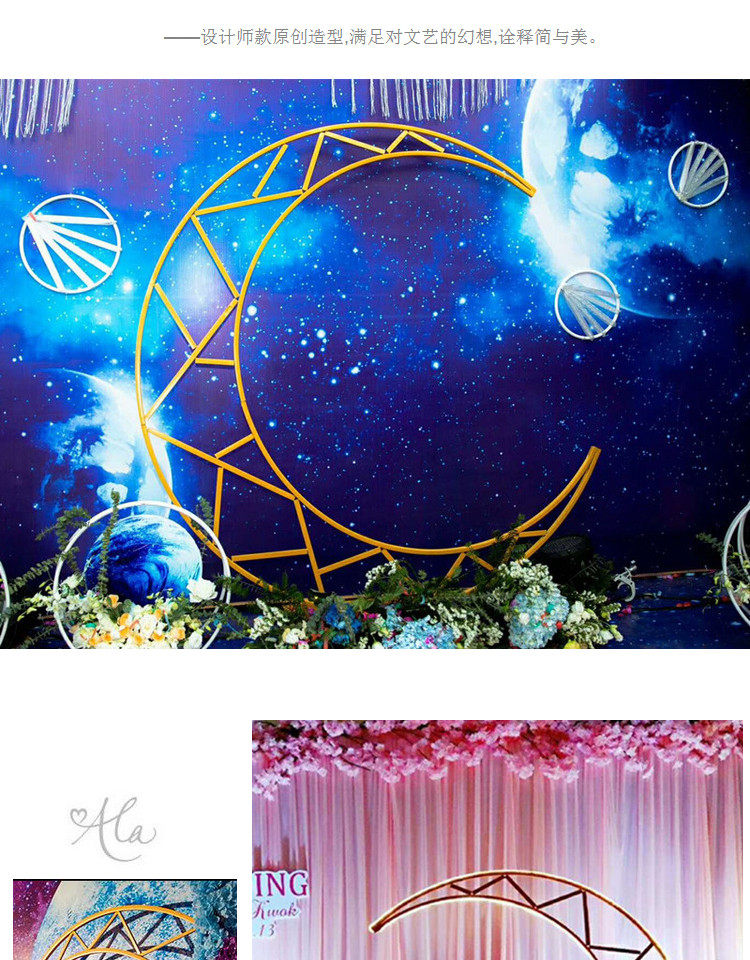 새로운 웨딩 소품 문 보트 장식품 웨딩 강당 철 배경 화면 호텔 창 장식 초승달 선반스토어 가기