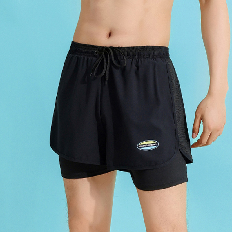 새로운 남자 수영 트렁크 속건 복서 플러스 사이즈 더블 레이어 당황 방지 수영 트렁크 소년 수영 장비 해변 수영 트렁크