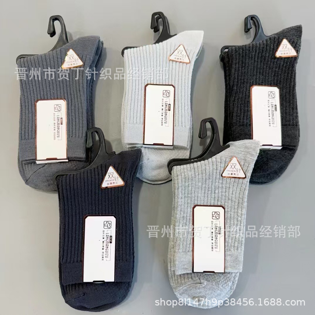 가을과 겨울 두꺼운 더블 바늘 남성과 여성의 양말 캐주얼 단색 중반 송아지 남성과 여성의 양말은면 양말 커플 양말 도매스토어 가기