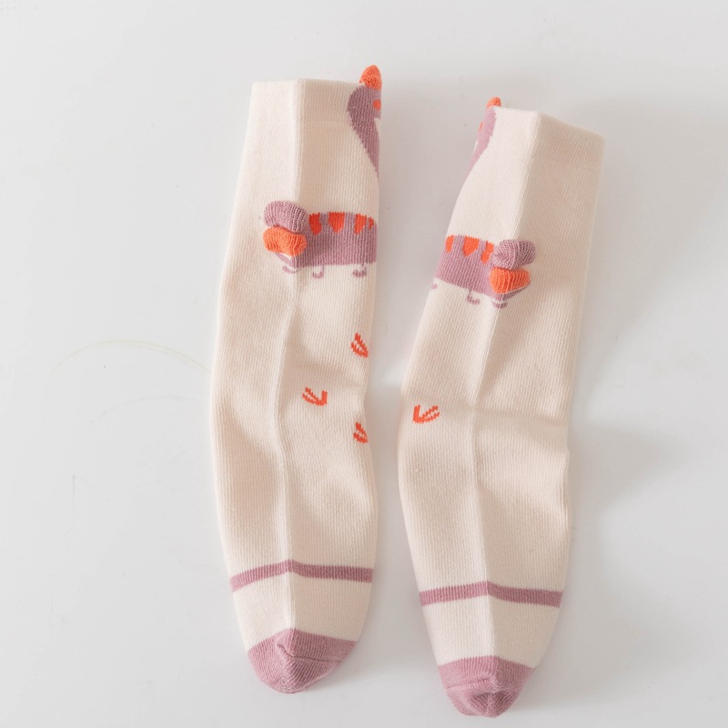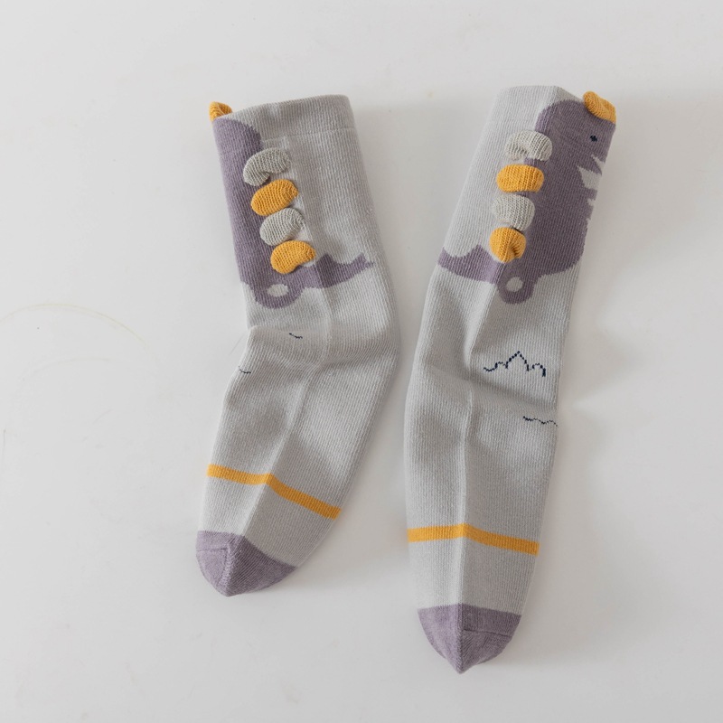 2023 아기 양말 어린이 스타킹 1-11 세 공룡 입체 자카드 아기 무릎 양말 굽이없는 직선 양말