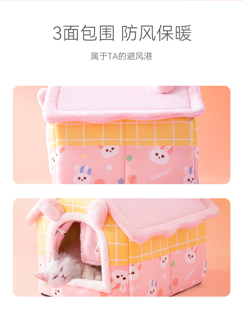 새로운 고양이 둥지 토끼 커튼 사계절 유니버설 개집 소형 및 중형 개 폐쇄 이동식 및 빨 개 침대 애완 동물 둥지 매트