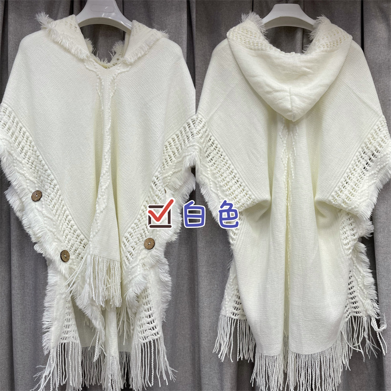 白色可以吊染色套头斗篷可手工扎染蓝色披肩大理丽江民族风扎染流苏披肩