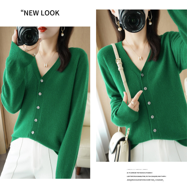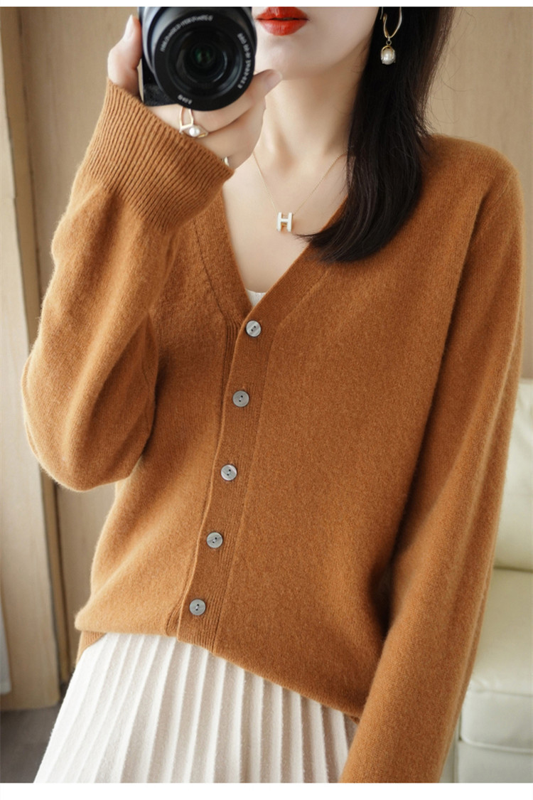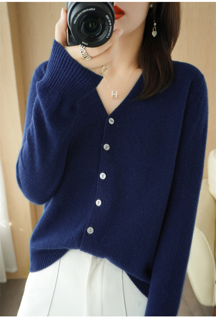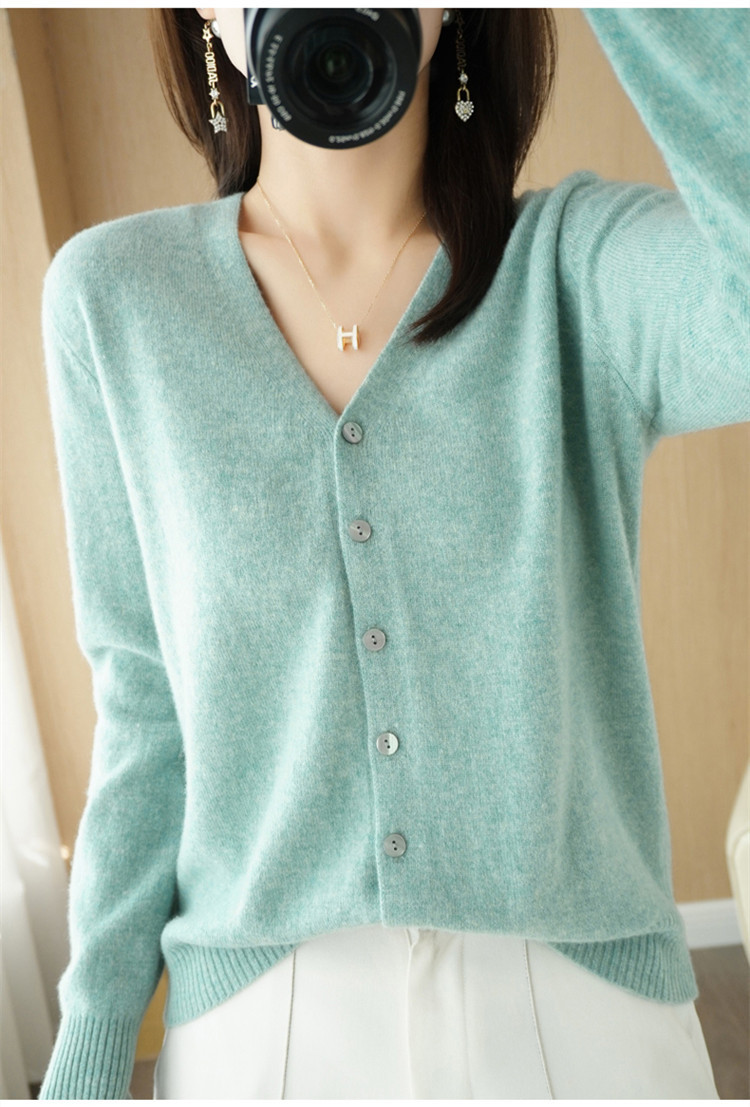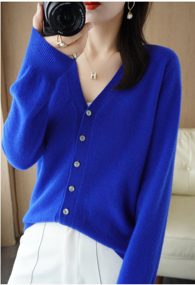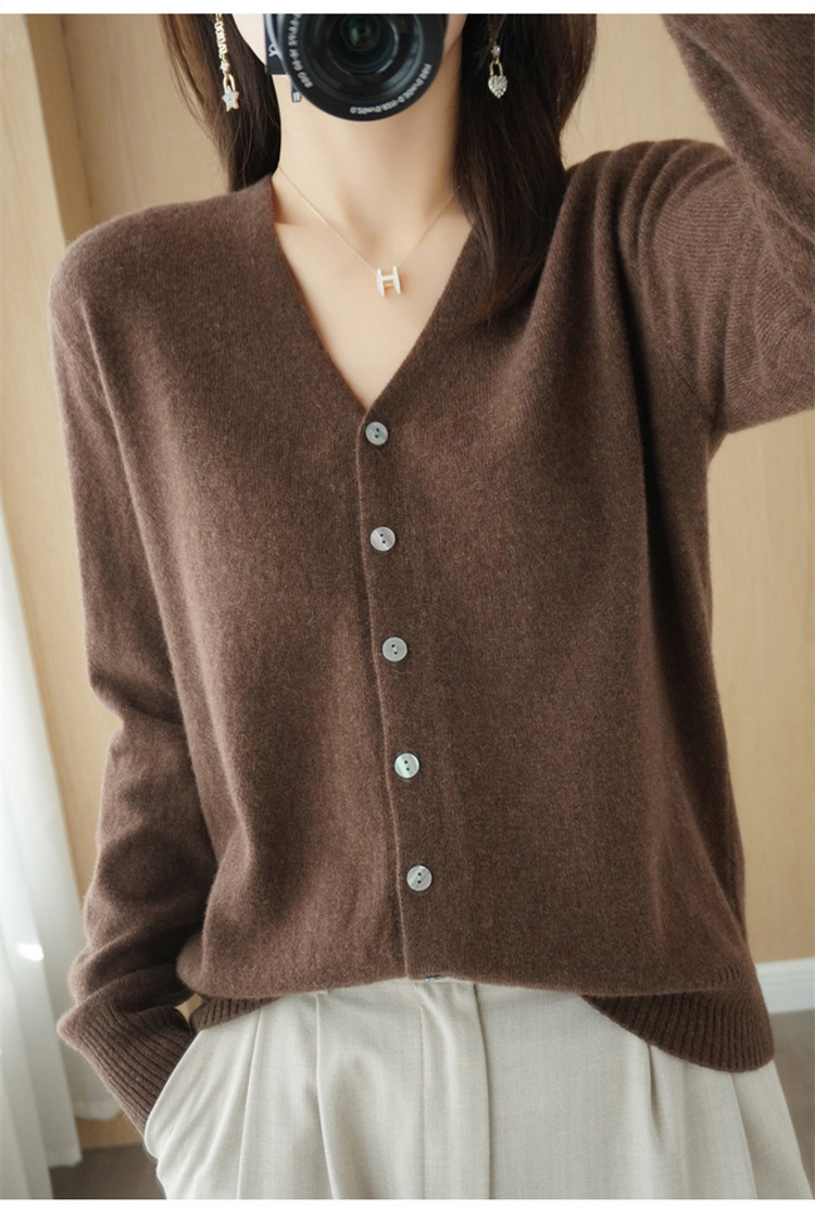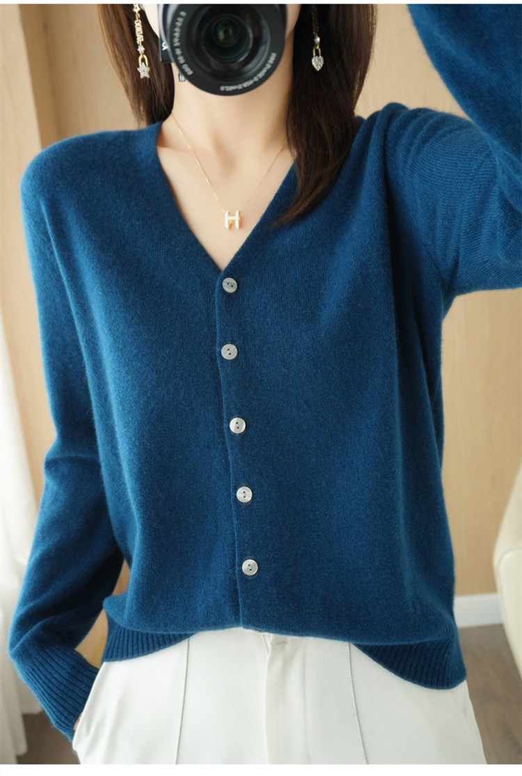 2025 봄과 가을 새로운 v 넥 솔리드 컬러 소프트 왁스 긴팔 스웨터 카디건 여성 스타일 솔리드 컬러 자켓 탑베이스스토어 가기