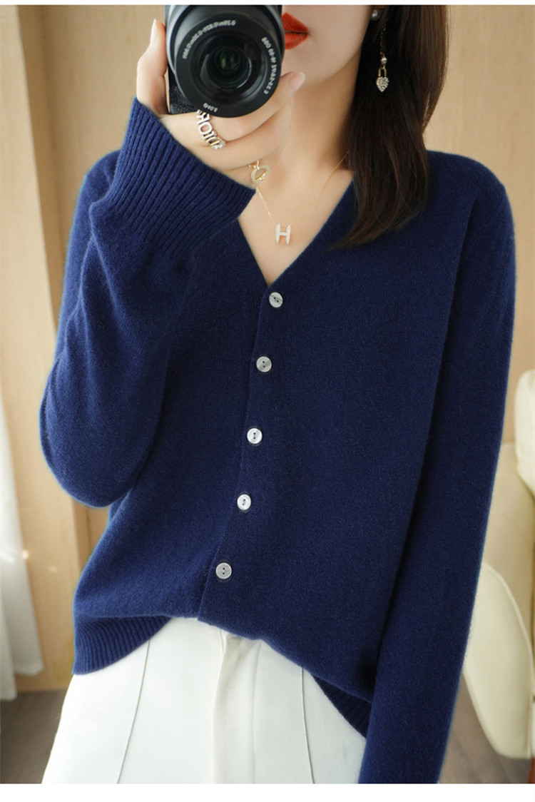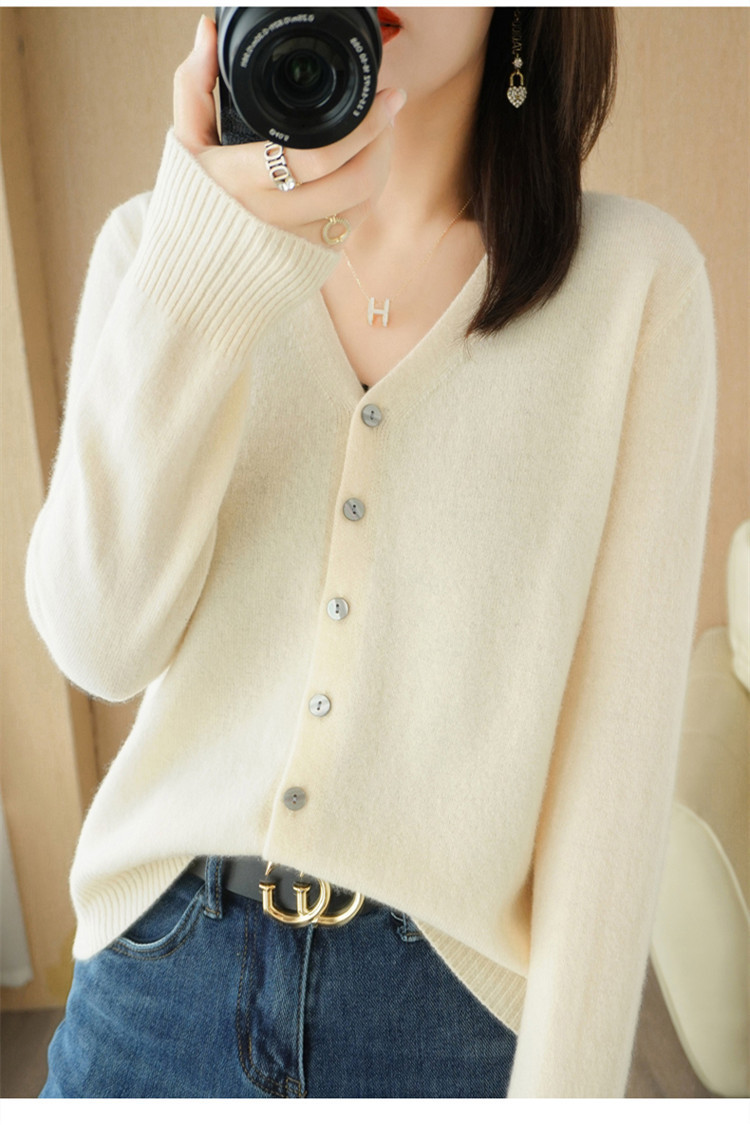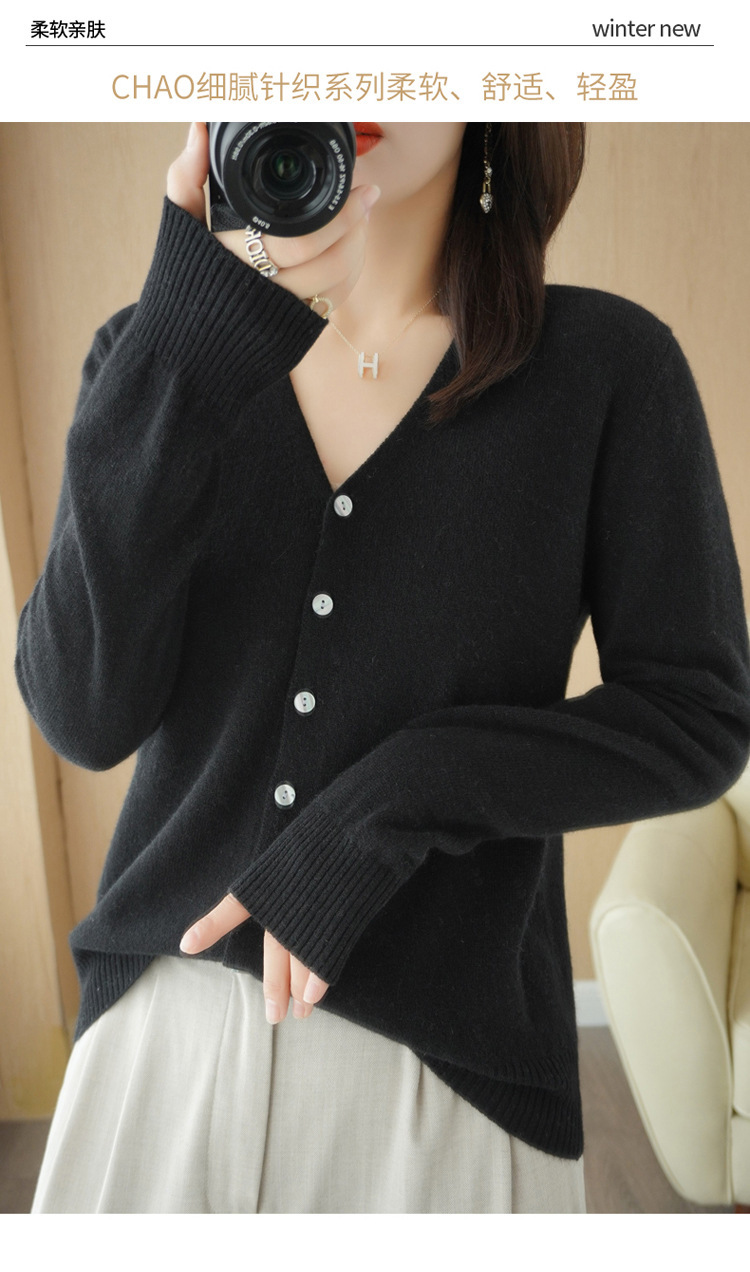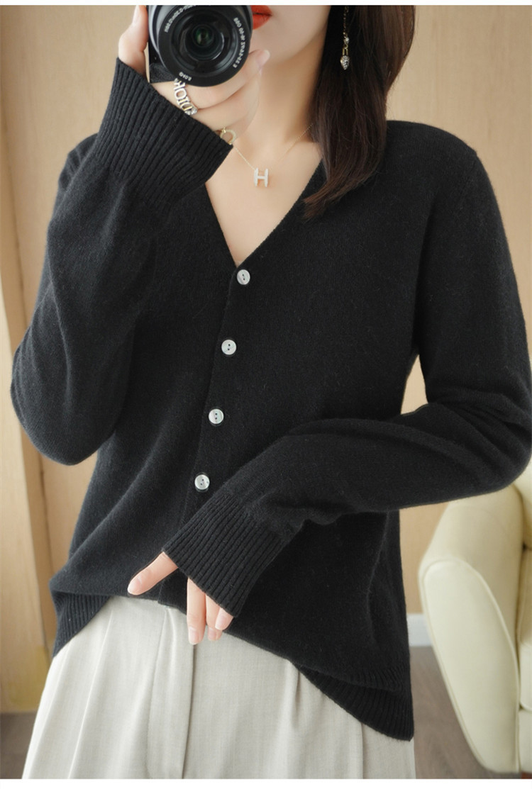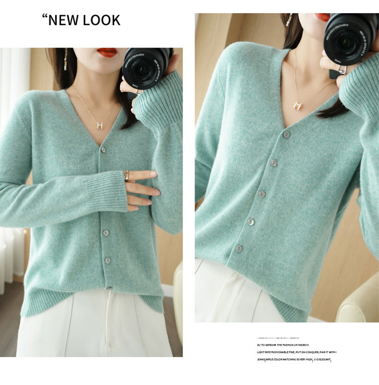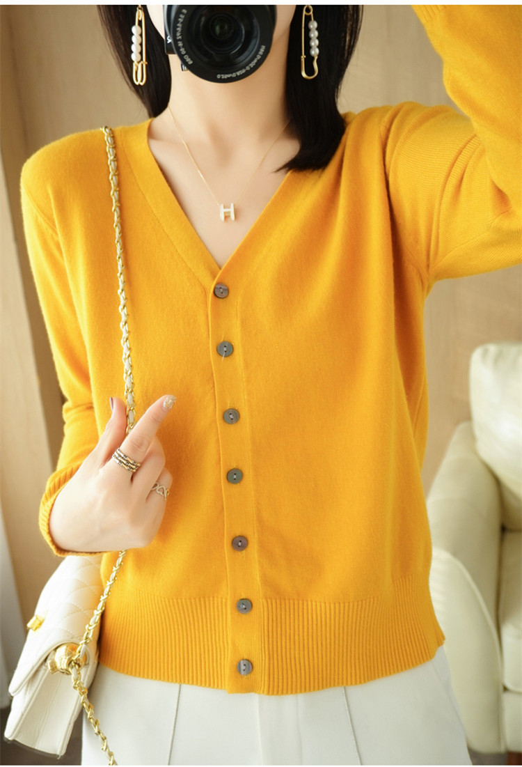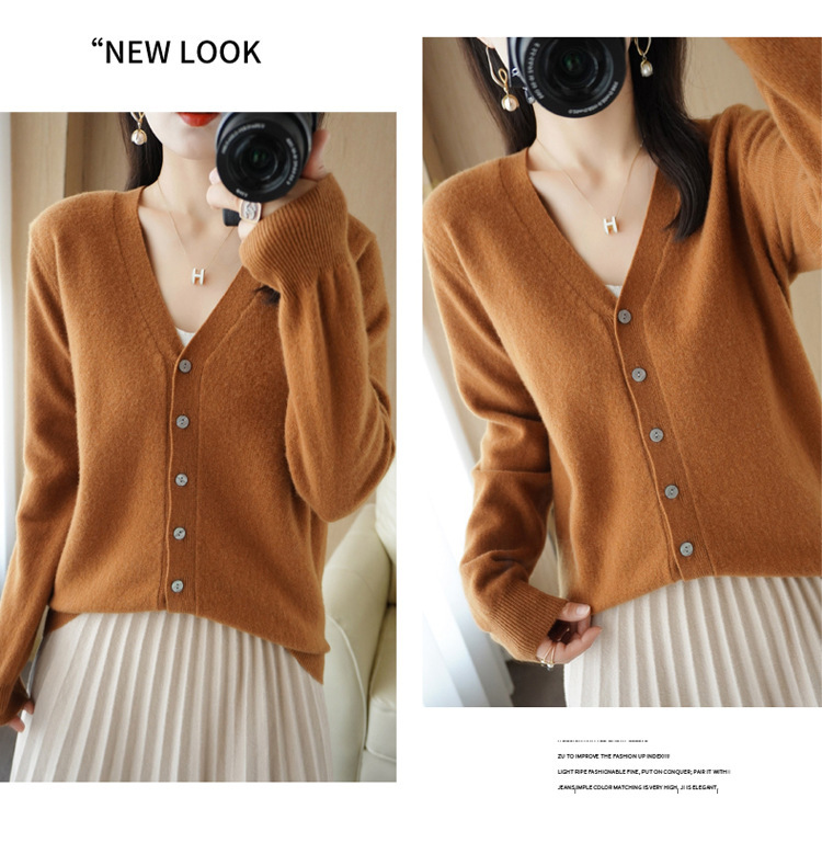 2025 봄과 가을 새로운 v 넥 솔리드 컬러 소프트 왁스 긴팔 스웨터 카디건 여성 스타일 솔리드 컬러 자켓 탑베이스스토어 가기