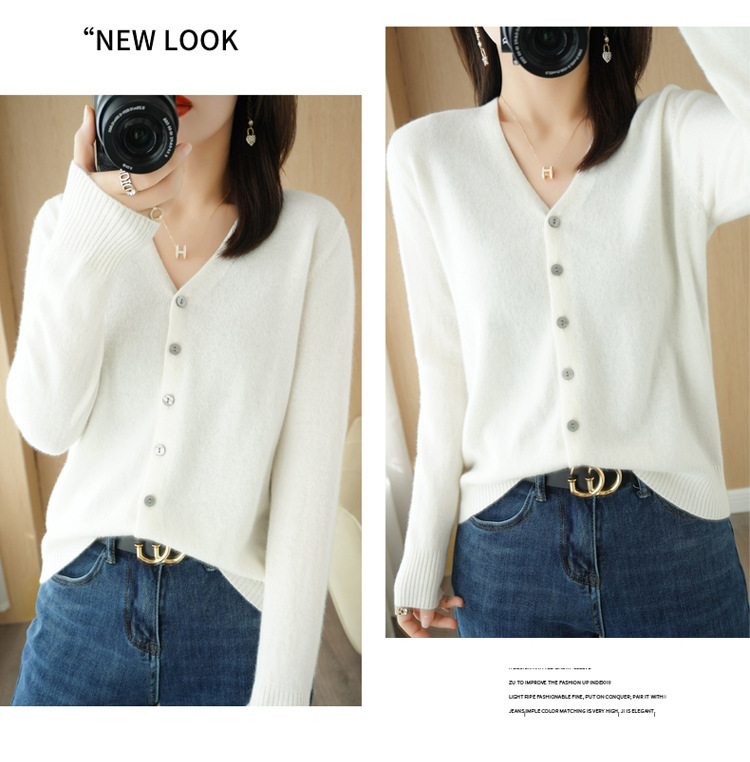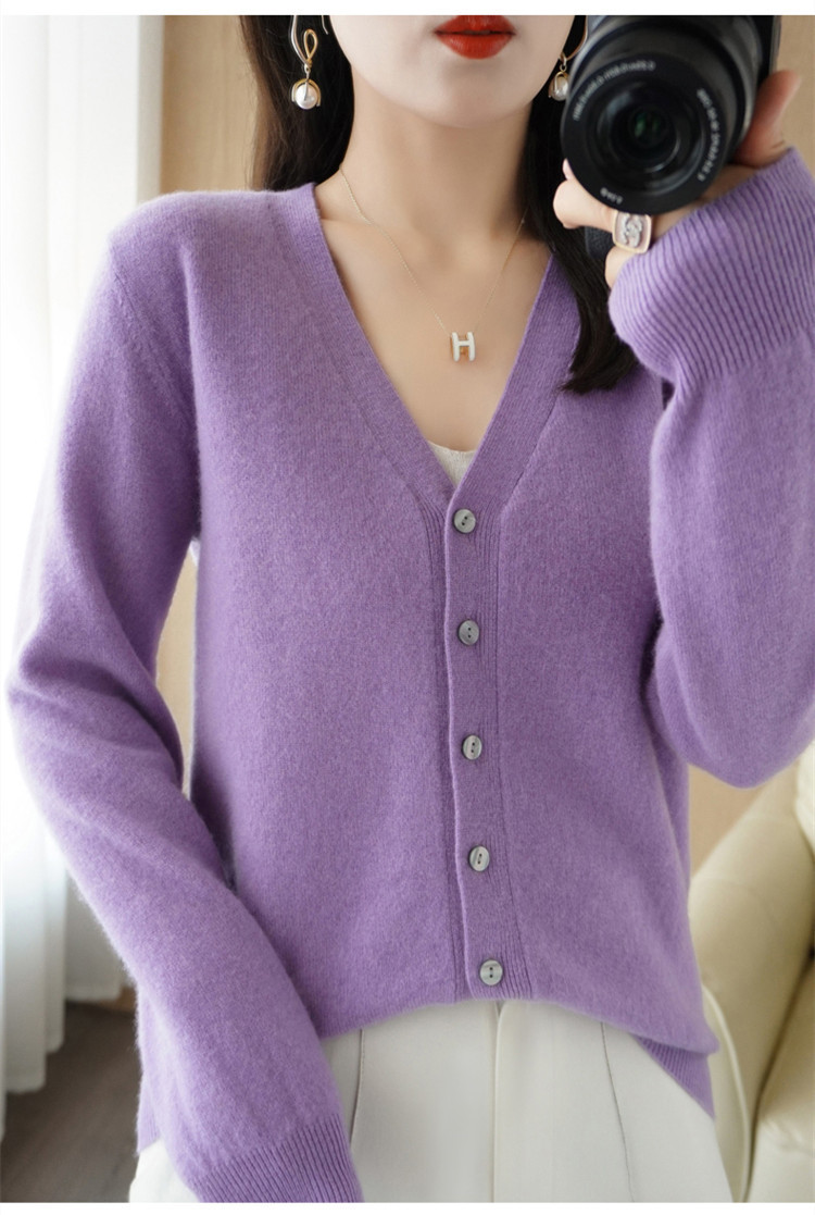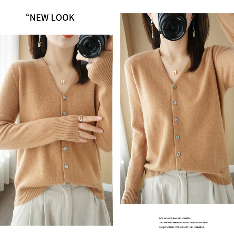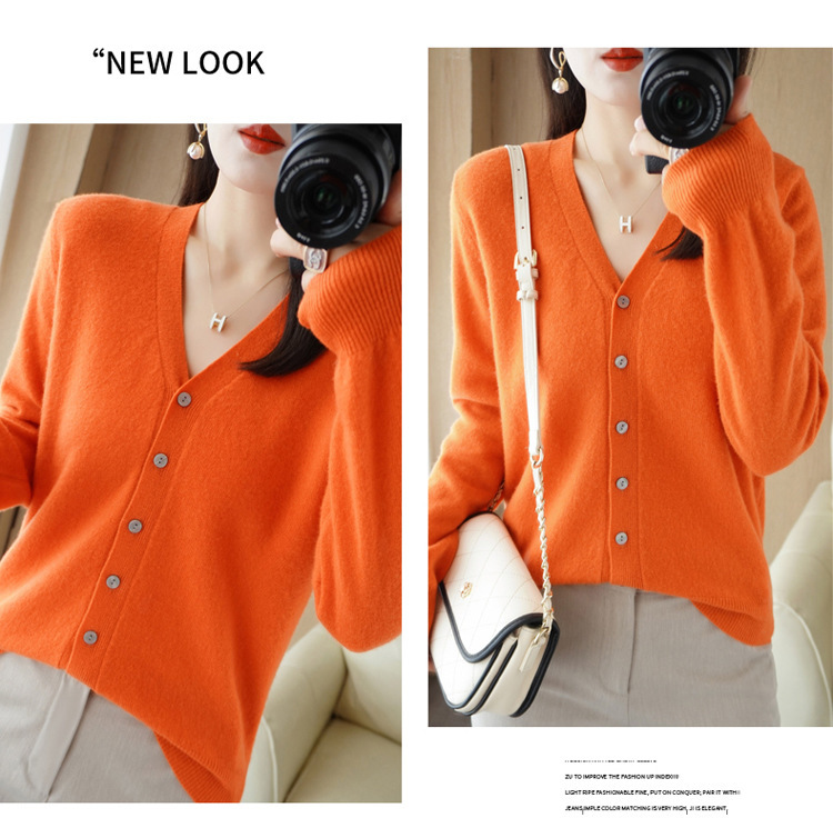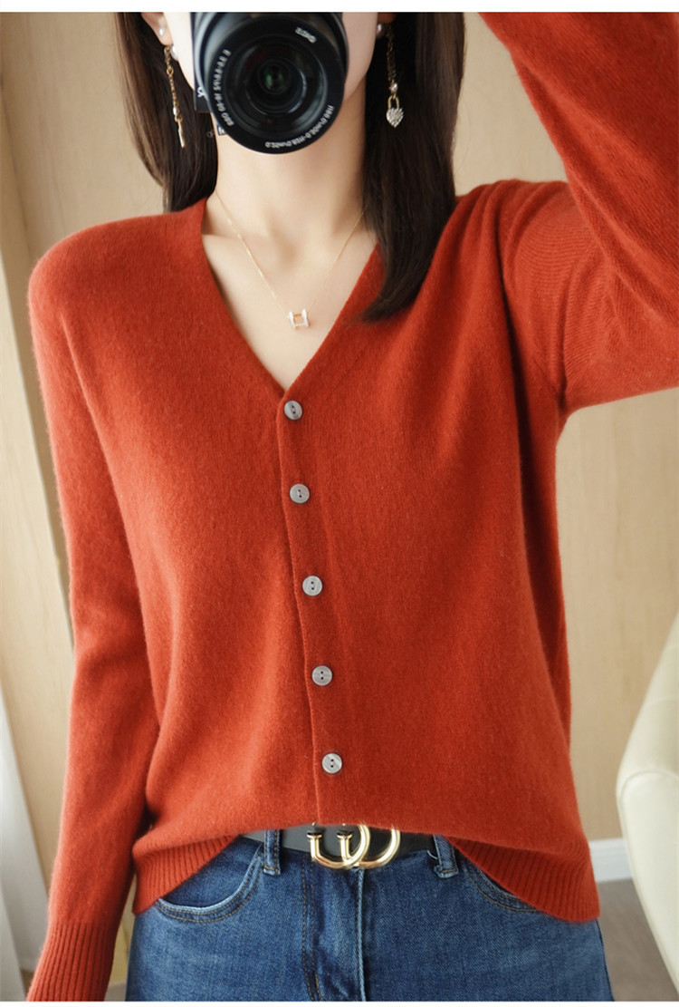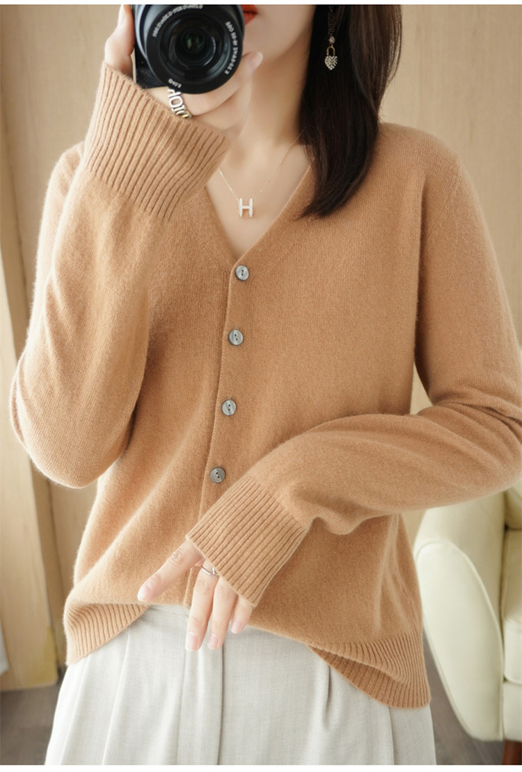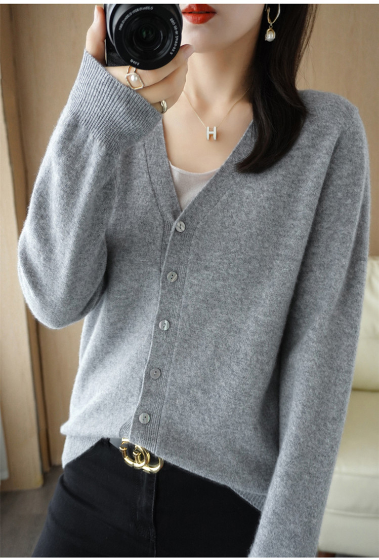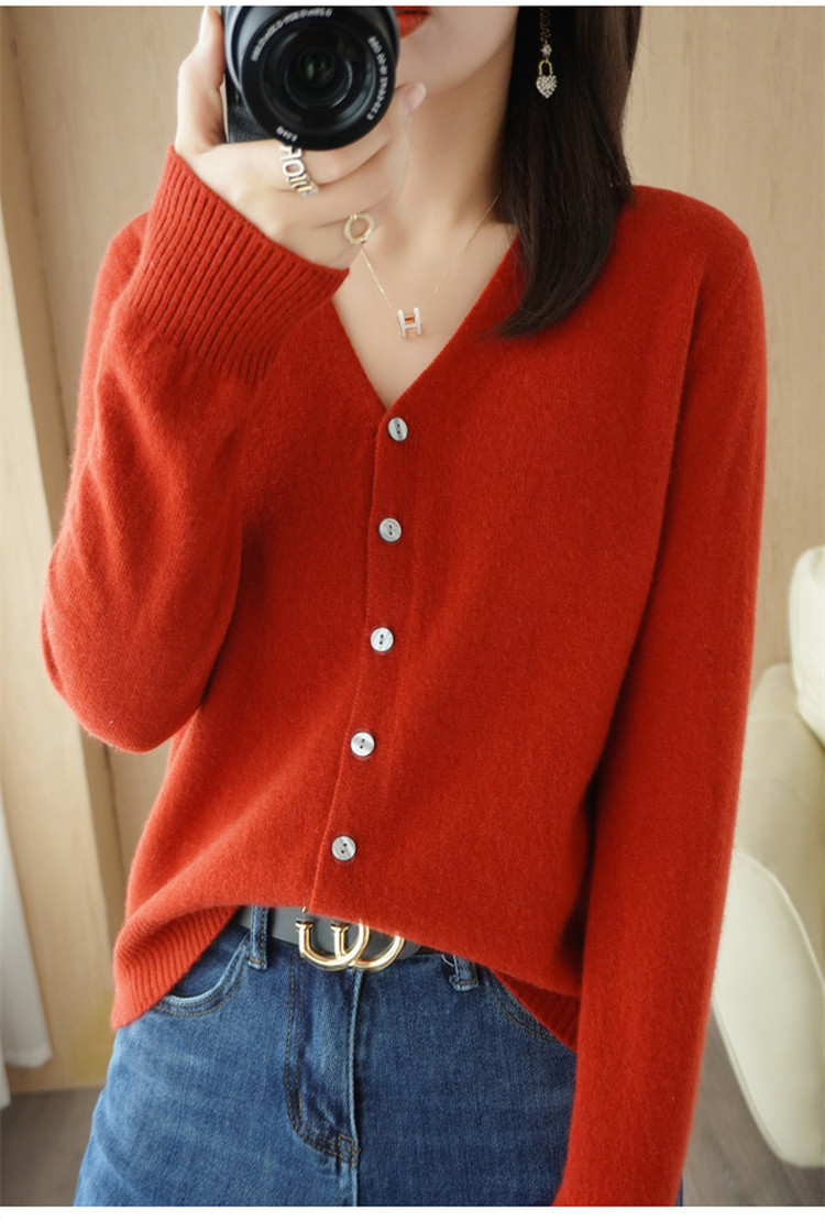 2025 봄과 가을 새로운 v 넥 솔리드 컬러 소프트 왁스 긴팔 스웨터 카디건 여성 스타일 솔리드 컬러 자켓 탑베이스스토어 가기