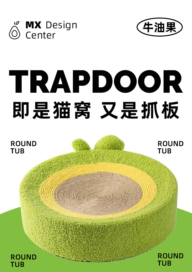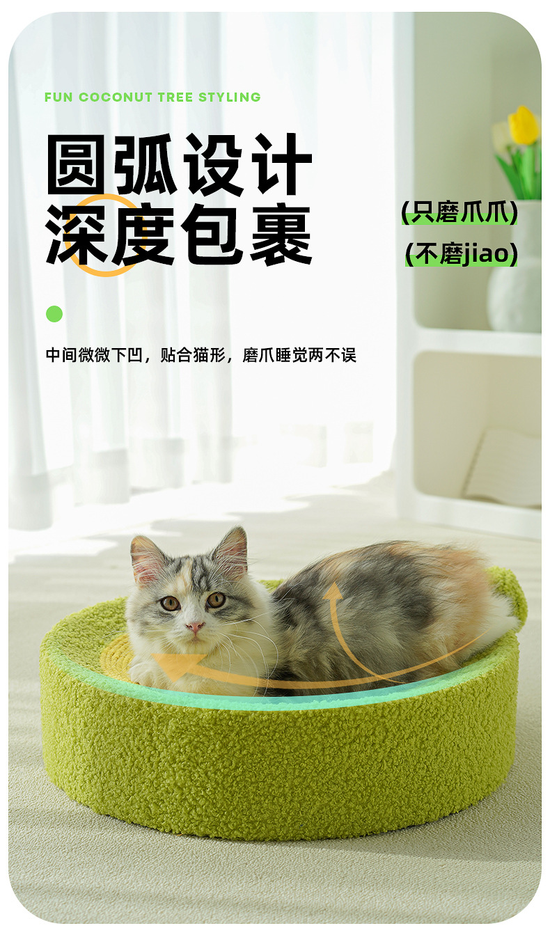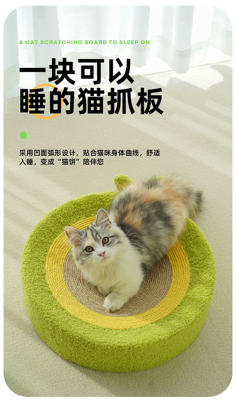 아보카도 고양이 긁는 분지 긁는 휴식 놀이 고양이 긁는 보드 대마 매트 긁힘 방지 및 내마모성 만족스러운 고양이 둥지 장난감 수면 가능