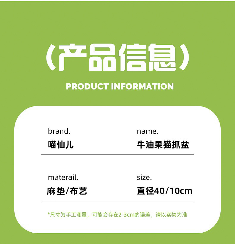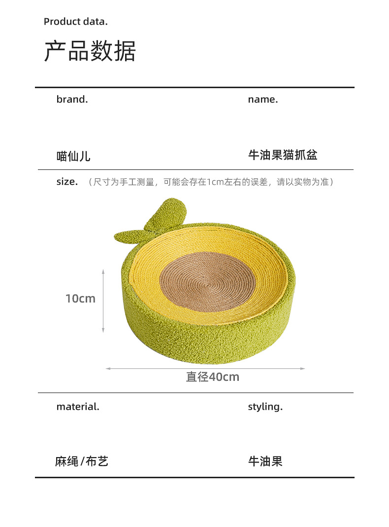 아보카도 고양이 긁는 분지 긁는 휴식 놀이 고양이 긁는 보드 대마 매트 긁힘 방지 및 내마모성 만족스러운 고양이 둥지 장난감 수면 가능스토어 가기