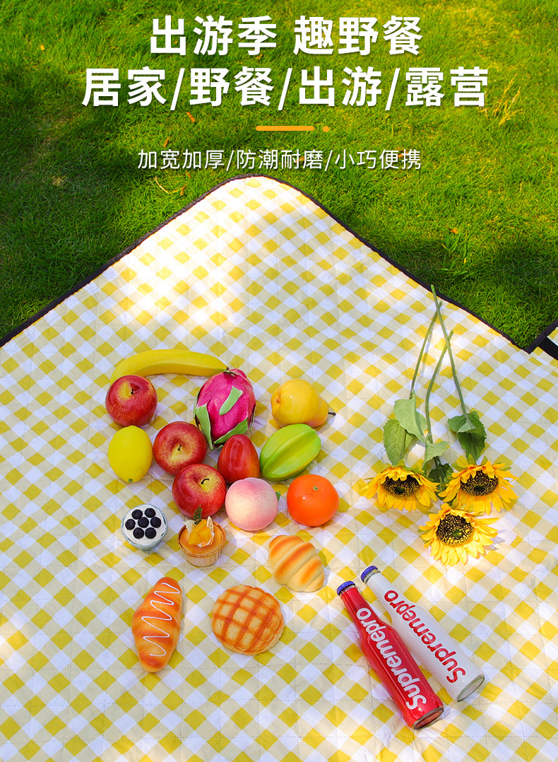 • 새로운 작은 노란색 격자 무늬 초음파 피크닉 매트