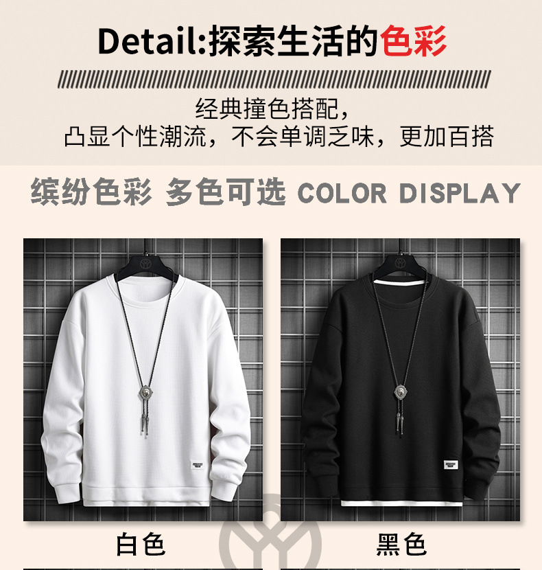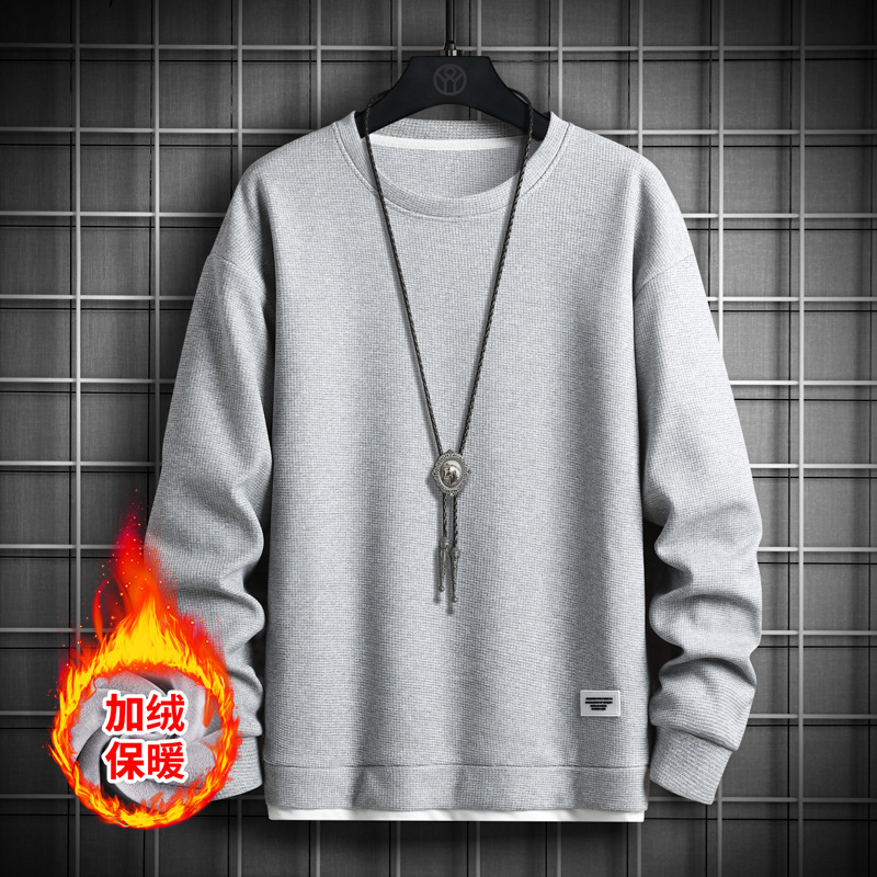 트렌디한 와플 패턴 투피스 스타일 남성용 가을 겨울 기모 라운드넥 루즈핏 긴팔 티셔츠 남성 캐주얼 이너웨어스토어 가기