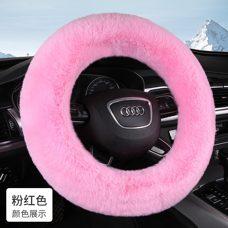 도매 재고 2022 새로운 토끼 모피 자동차 핸들 커버 겨울 따뜻한 보편적 인 고무 링 핸들 커버 미끄럼 방지 부동액스토어 가기