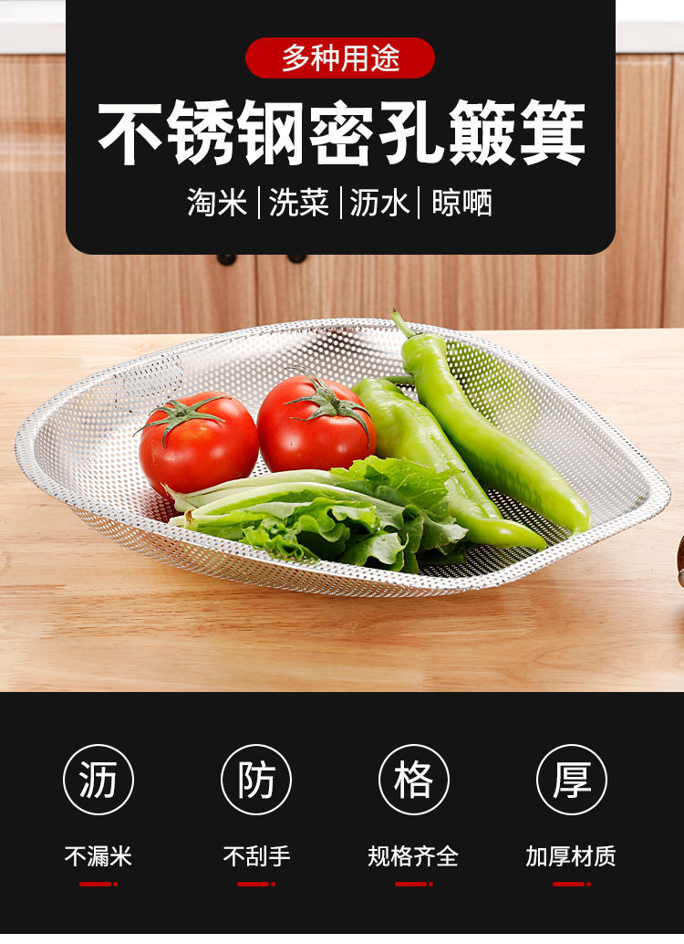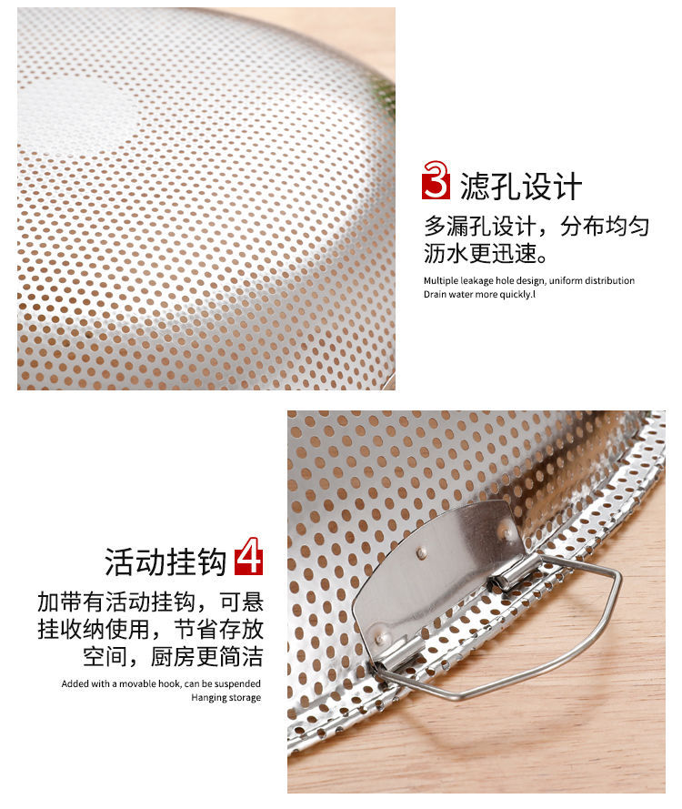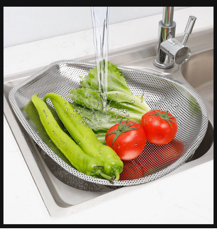 스테인레스 스틸 Shau Kei 조밀 한 구멍 배수 야채 세면대 주방 대형 건조 바구니 누출 세척 물 과일 및 야채 바구니 쓰레받기스토어 가기