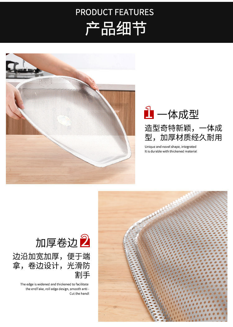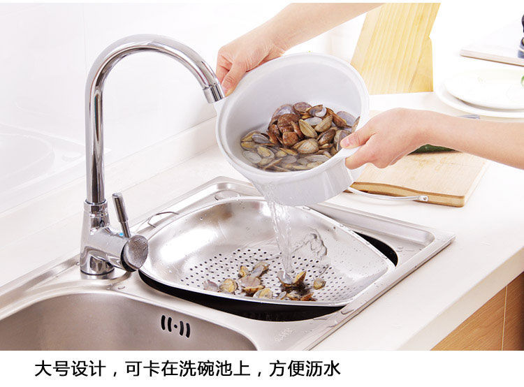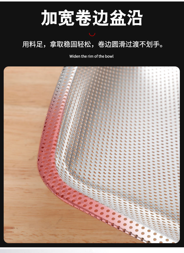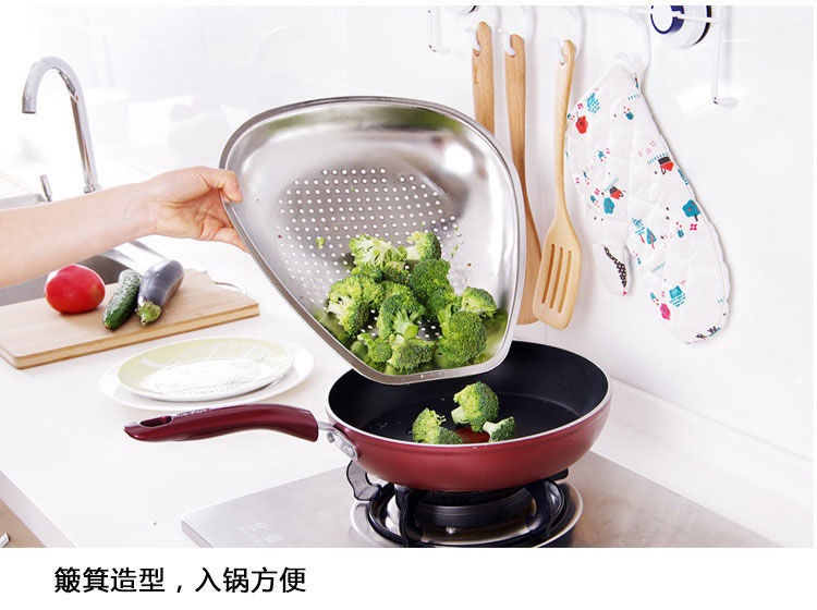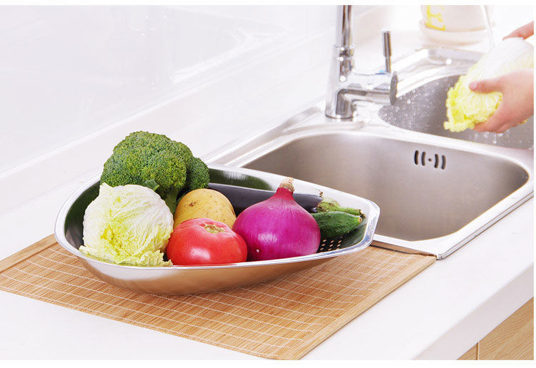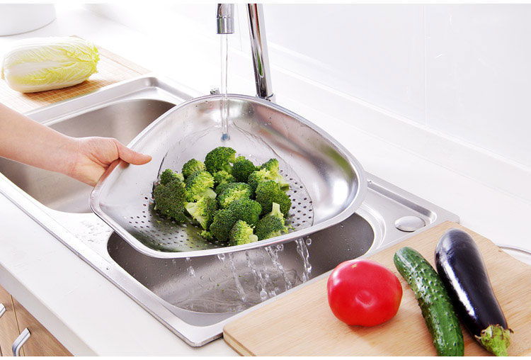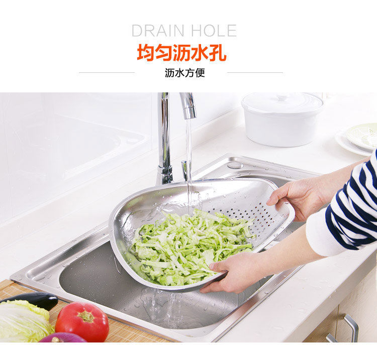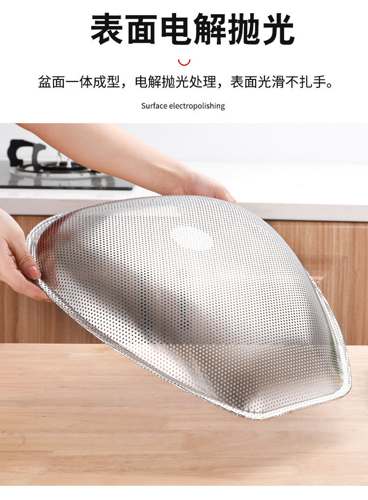 스테인레스 스틸 Shau Kei 조밀 한 구멍 배수 야채 세면대 주방 대형 건조 바구니 누출 세척 물 과일 및 야채 바구니 쓰레받기