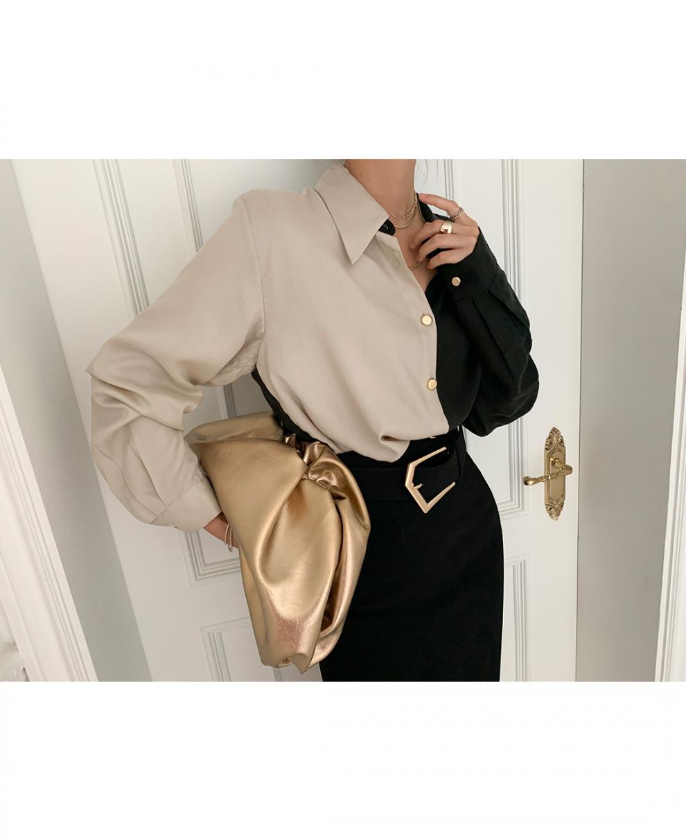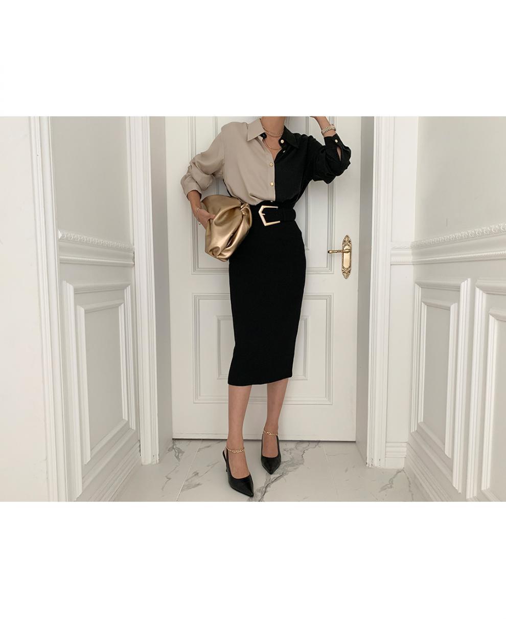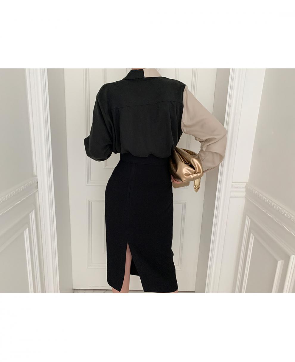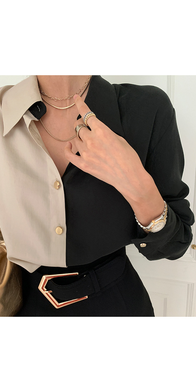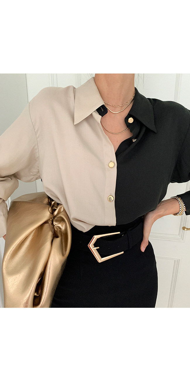 2025 한국 시크 가을 복고풍 배색 디자인 기질 다재다능한 배색 긴팔 셔츠
