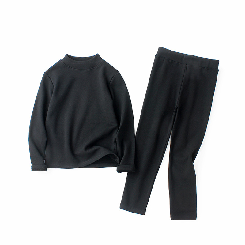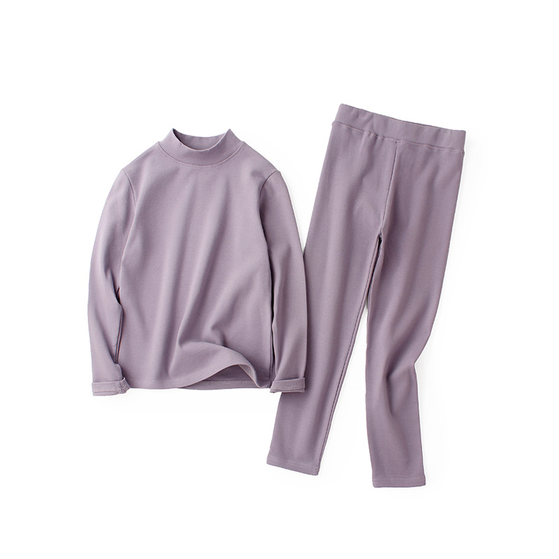 가을과 겨울 아동 의류 새로운 아이들의 긴 소매 세트 소녀 단색 캐시미어 따뜻한 바닥 바지 세트 세대