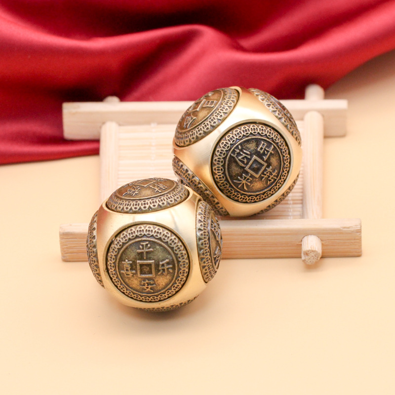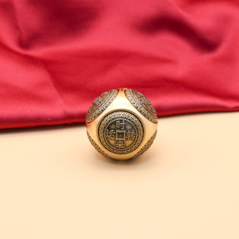 黄铜六面圆球型解压转转手把件时来运转招财进宝牛转乾坤高档礼品