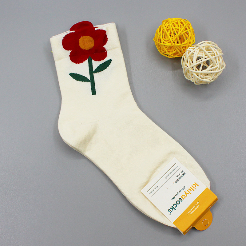 WC214 가을 겨울 신상 한국 양말 도매 동대문 큰 꽃무늬 한국 여성용 중간 길이 양말 도매스토어 가기