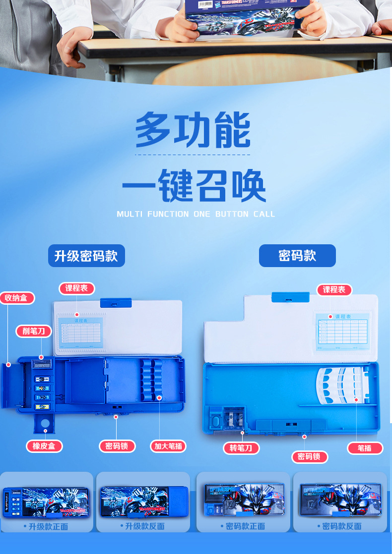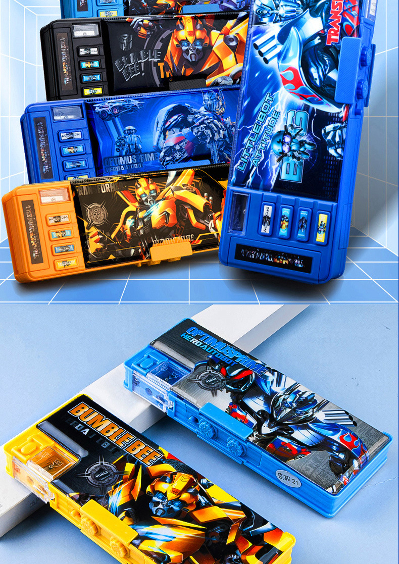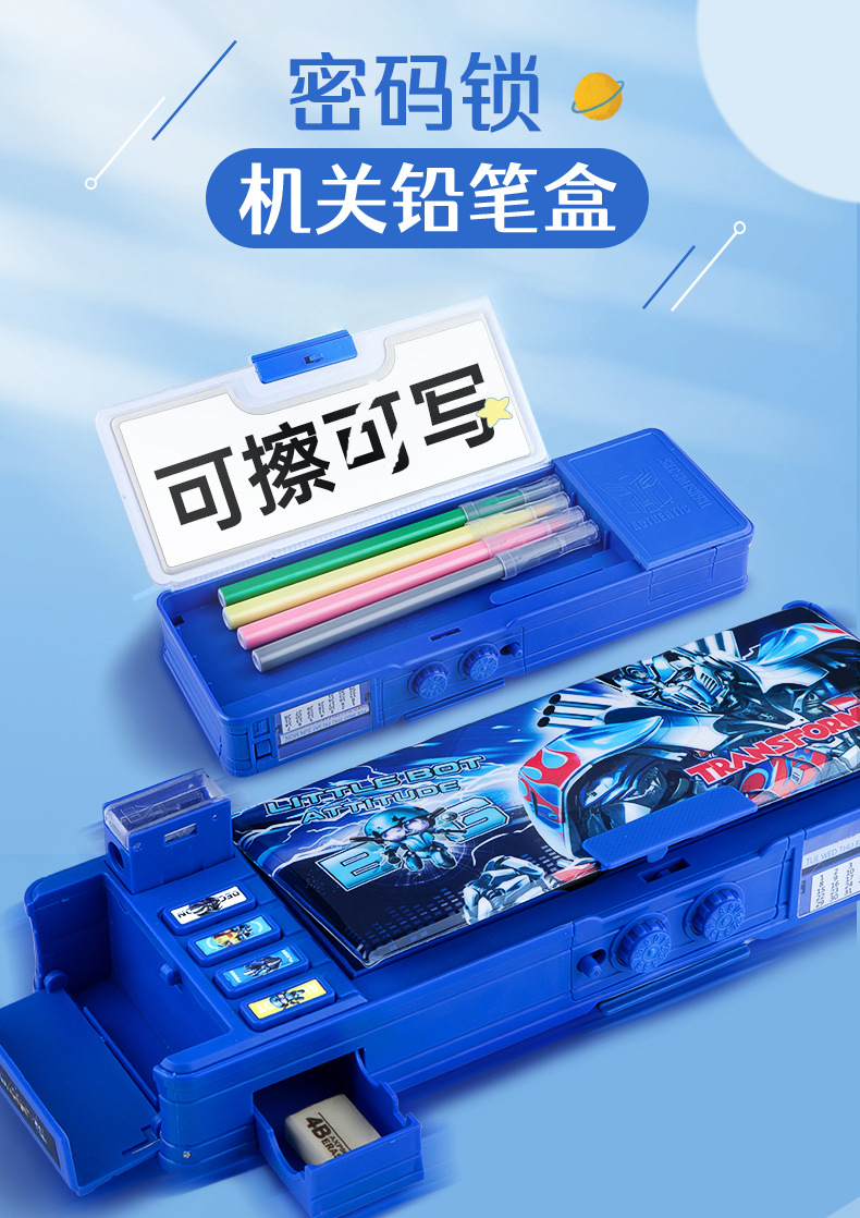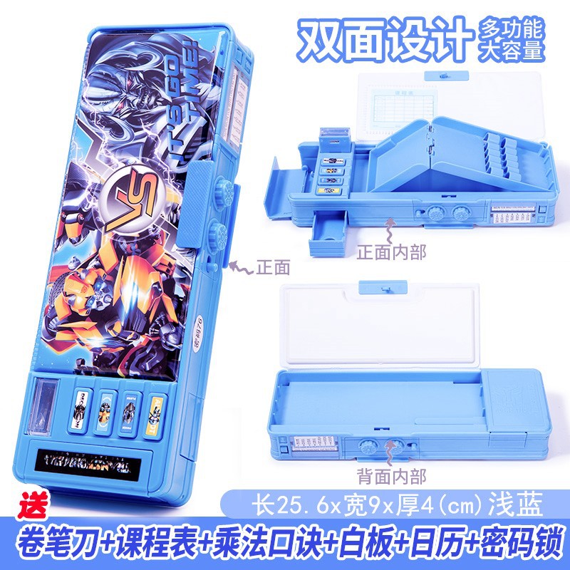 변압기 필통 다기능 하이테크 필통 소년 비밀번호 잠금 필통 유치원 연필 가방