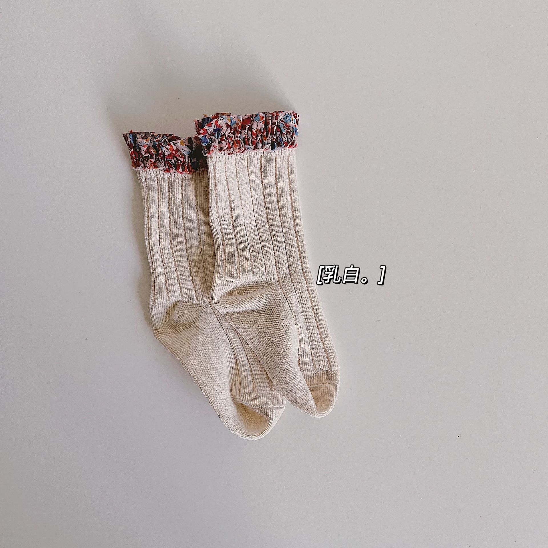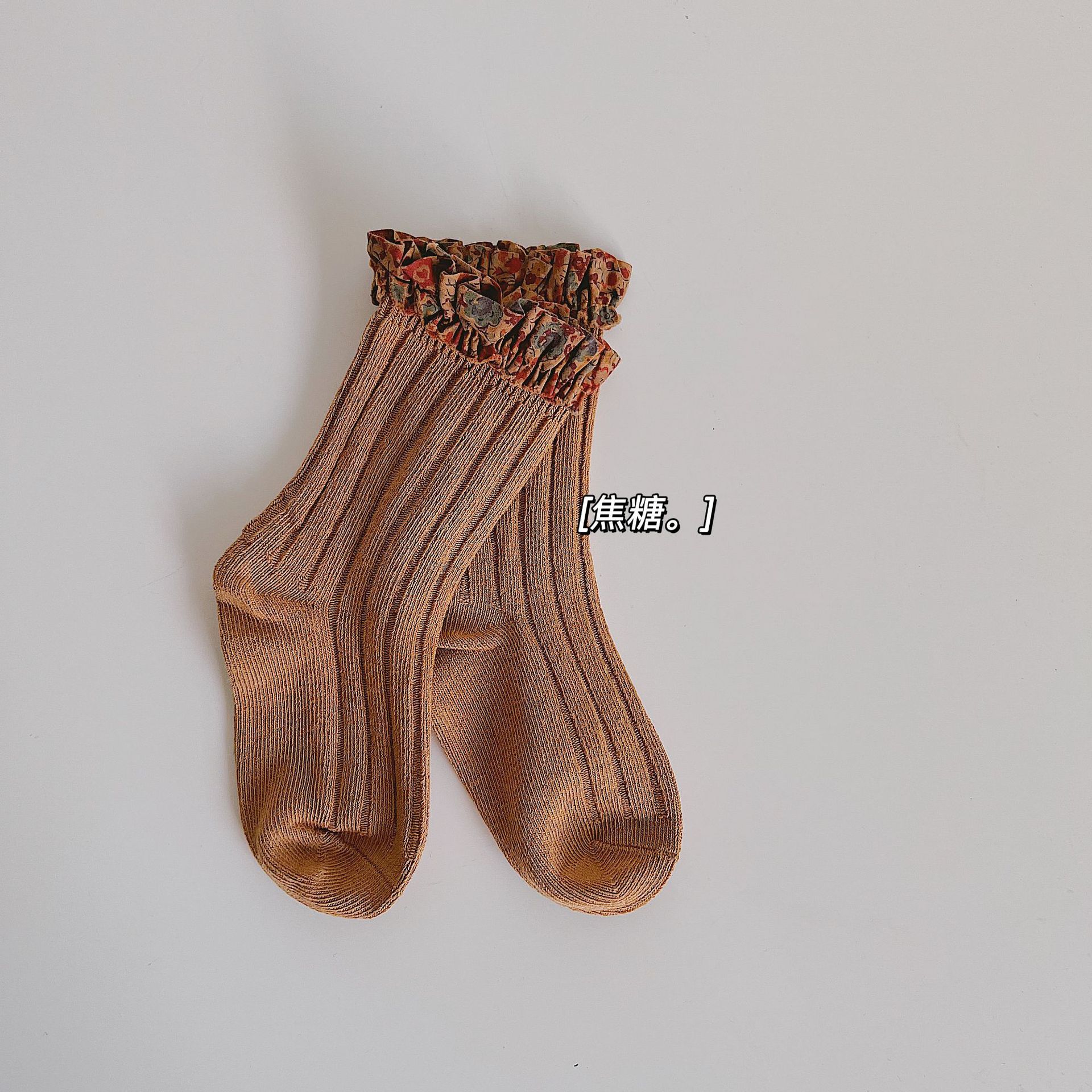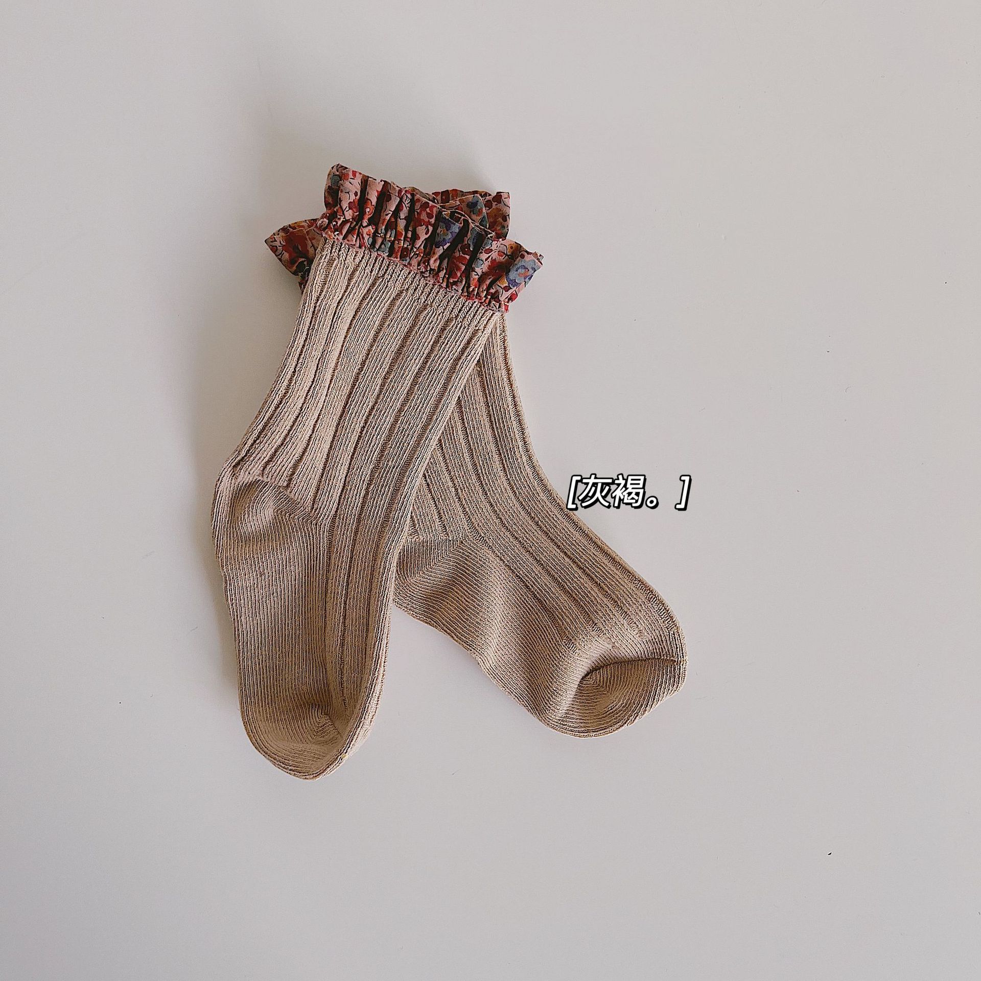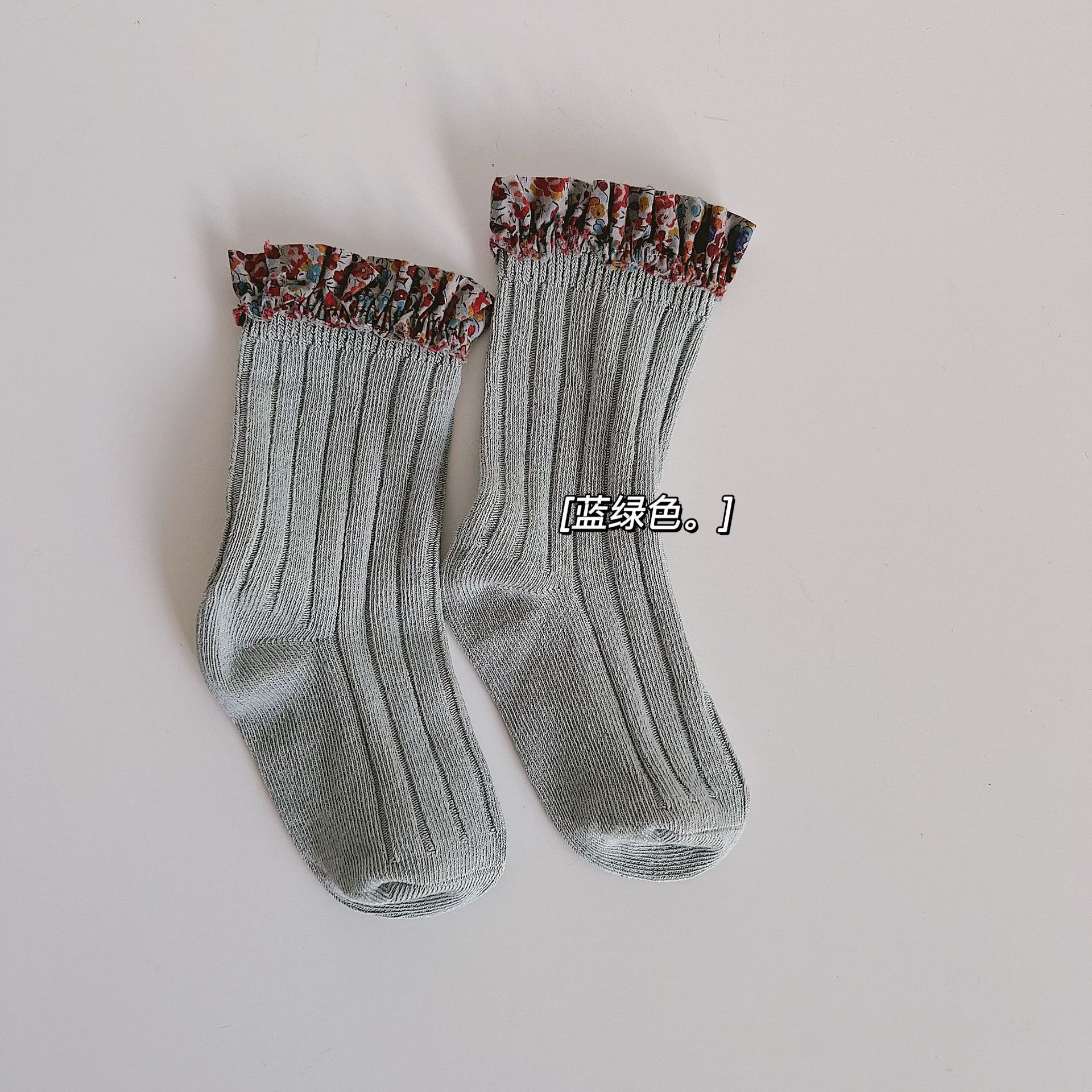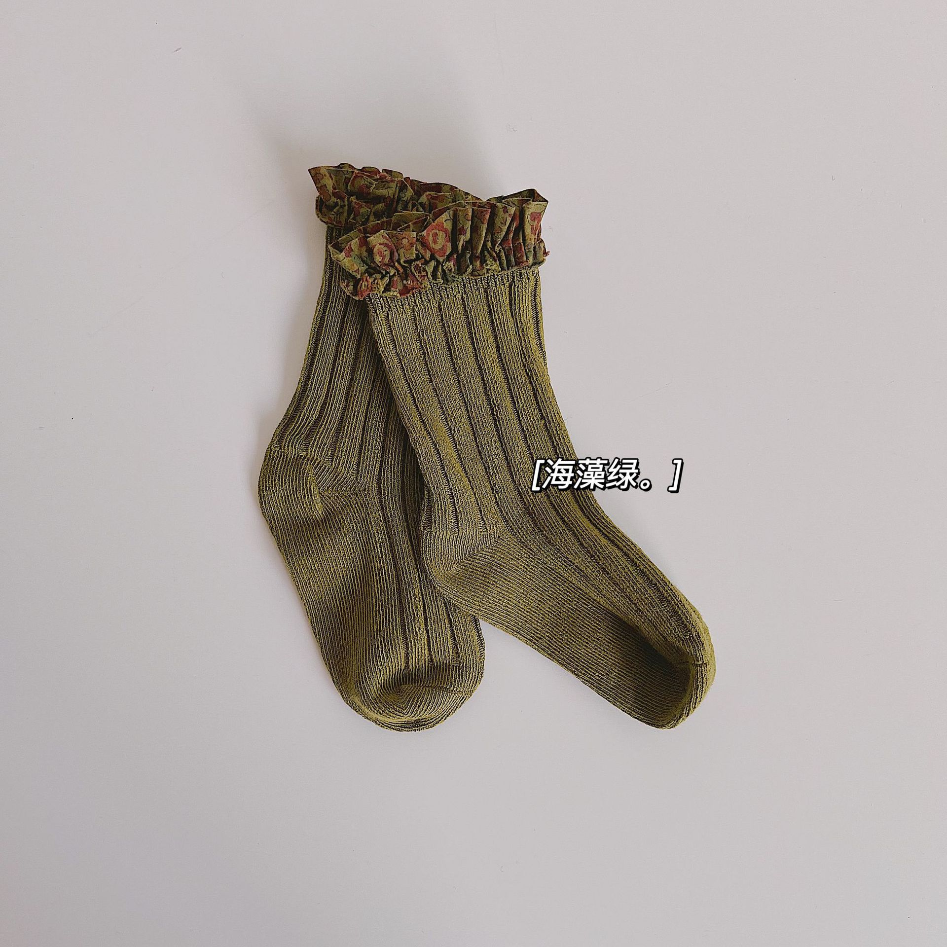 가을 새로운 스페인 스타일 새로운 색상 꽃 레이스 어린이 양말 여자 공주 짧은 양말 여자 더블 바늘 양말 유행스토어 가기