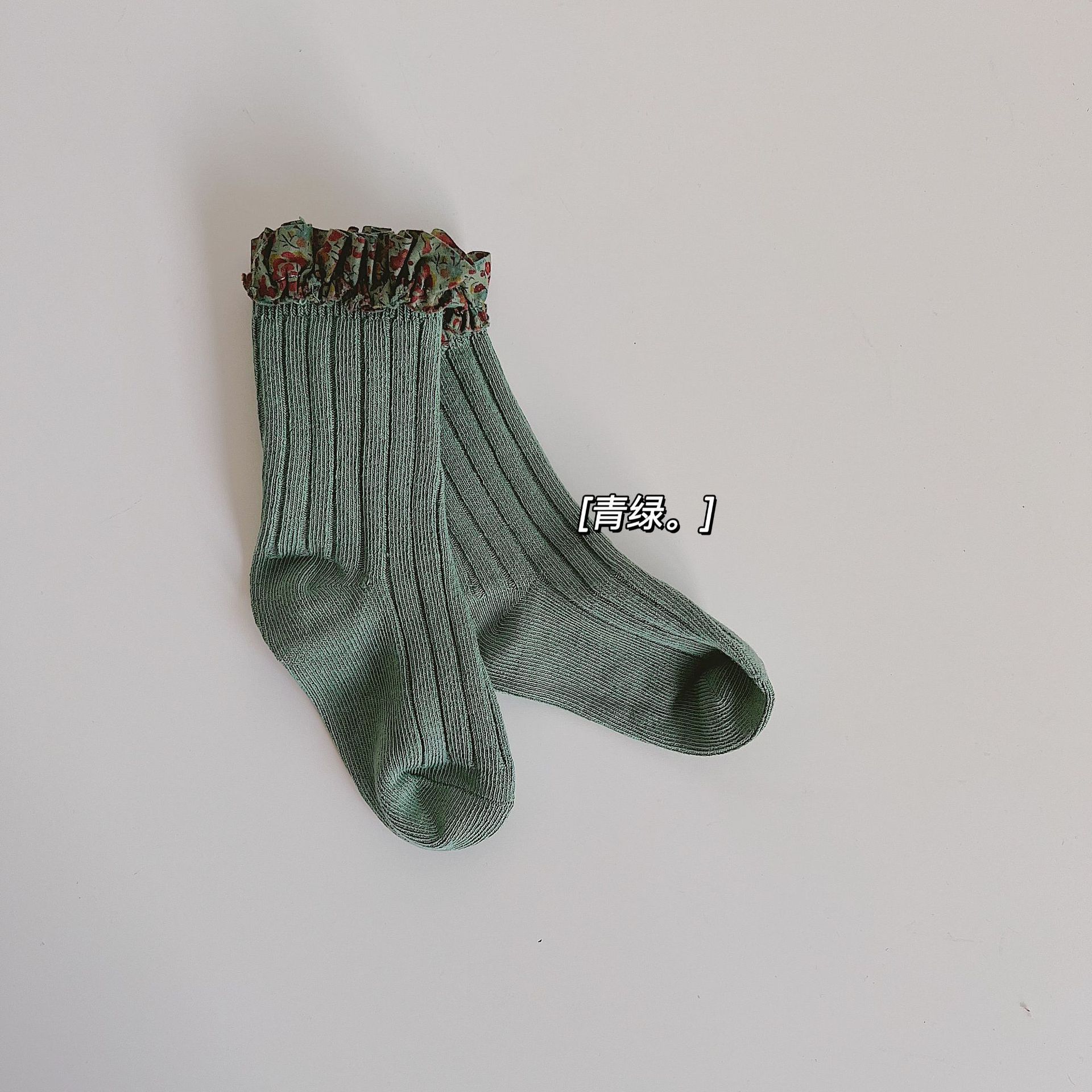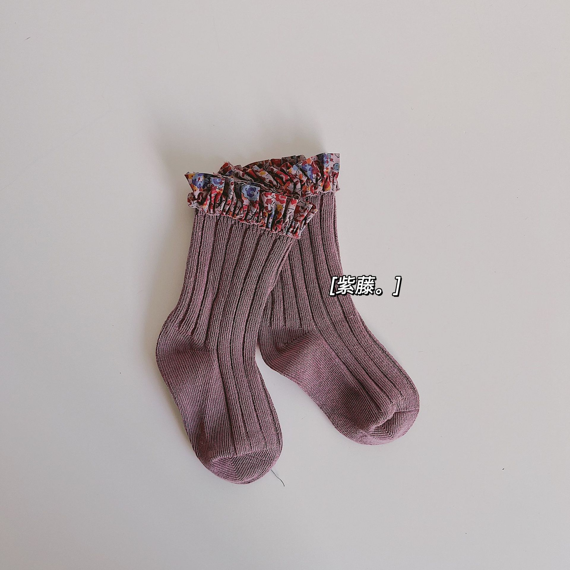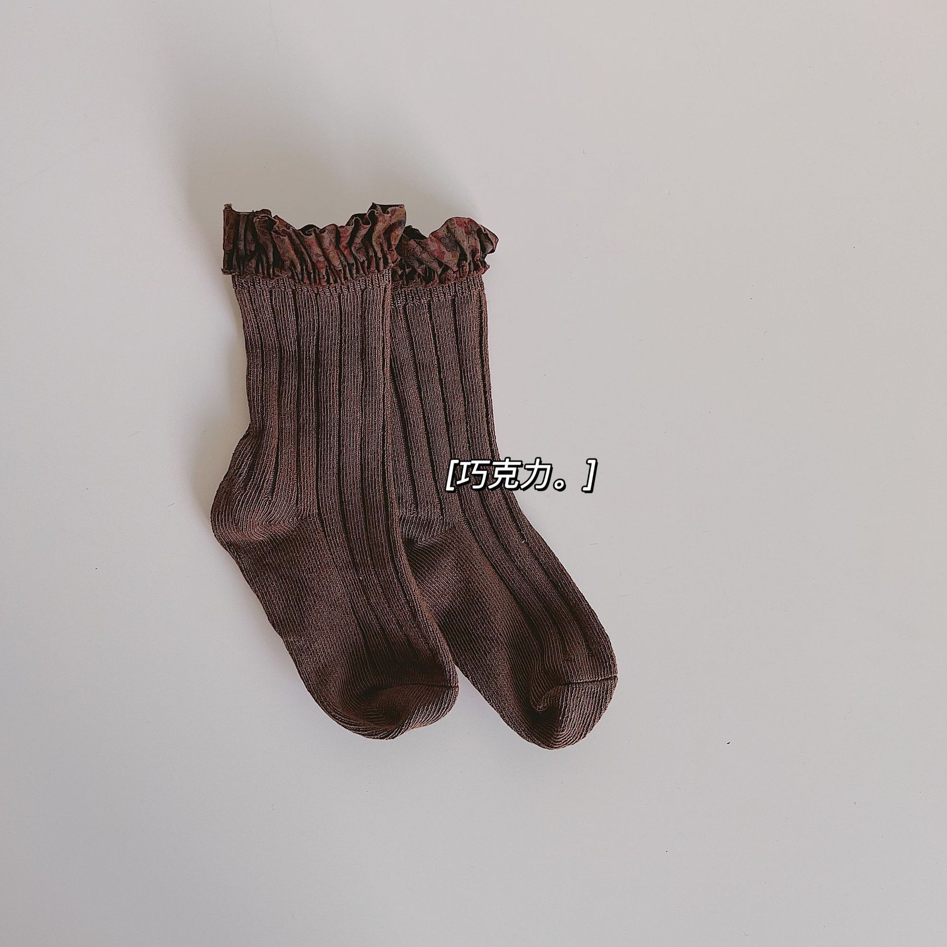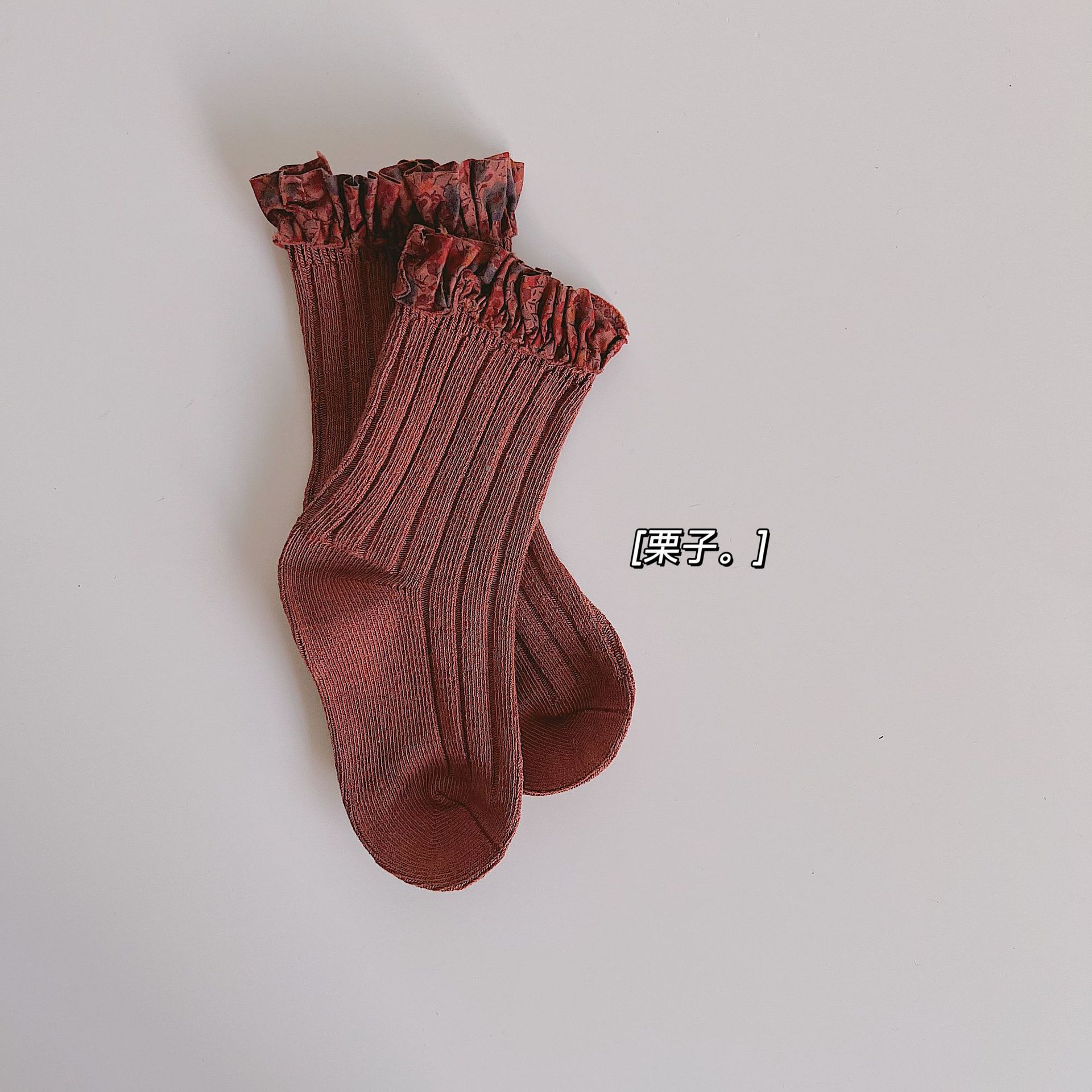 가을 새로운 스페인 스타일 새로운 색상 꽃 레이스 어린이 양말 여자 공주 짧은 양말 여자 더블 바늘 양말 유행스토어 가기