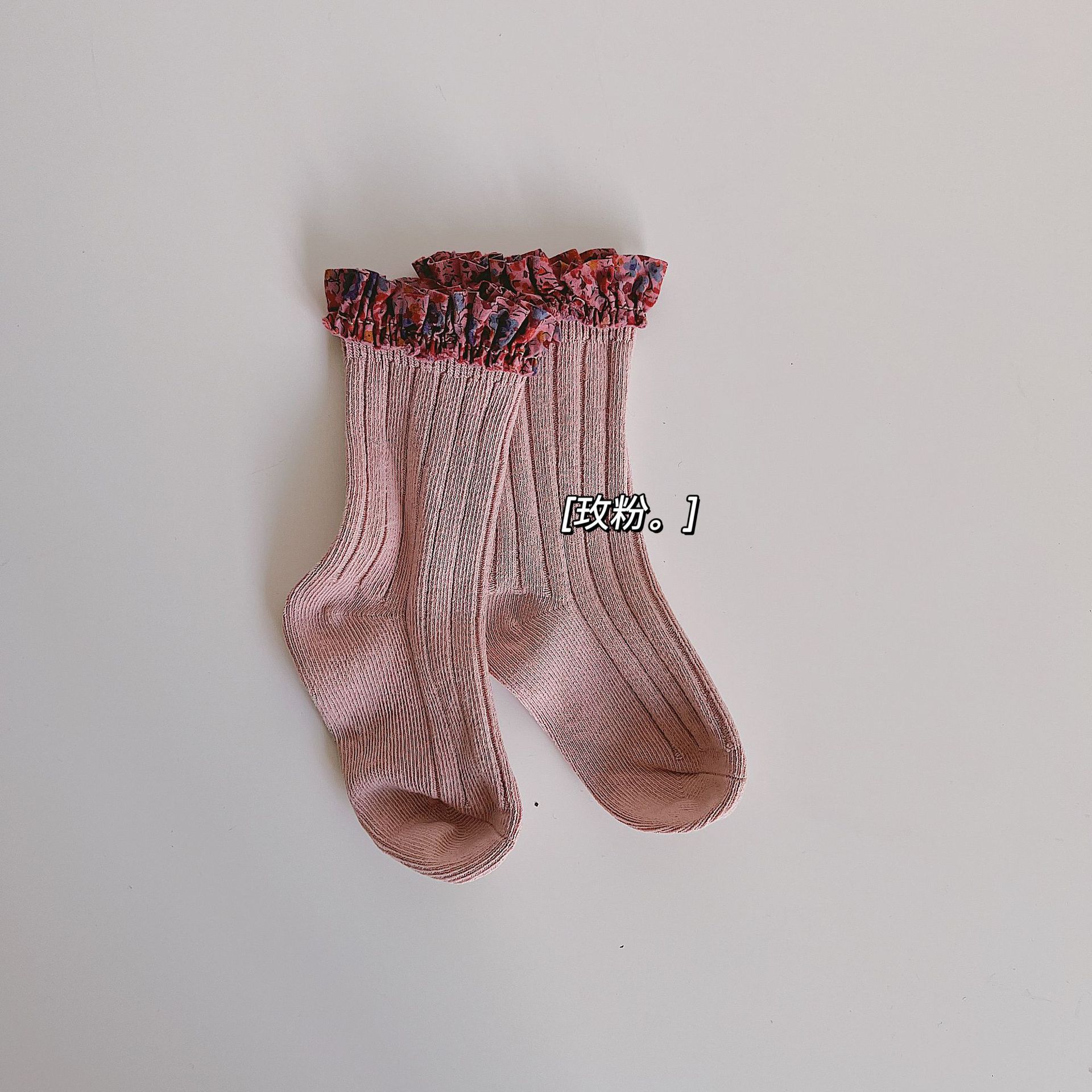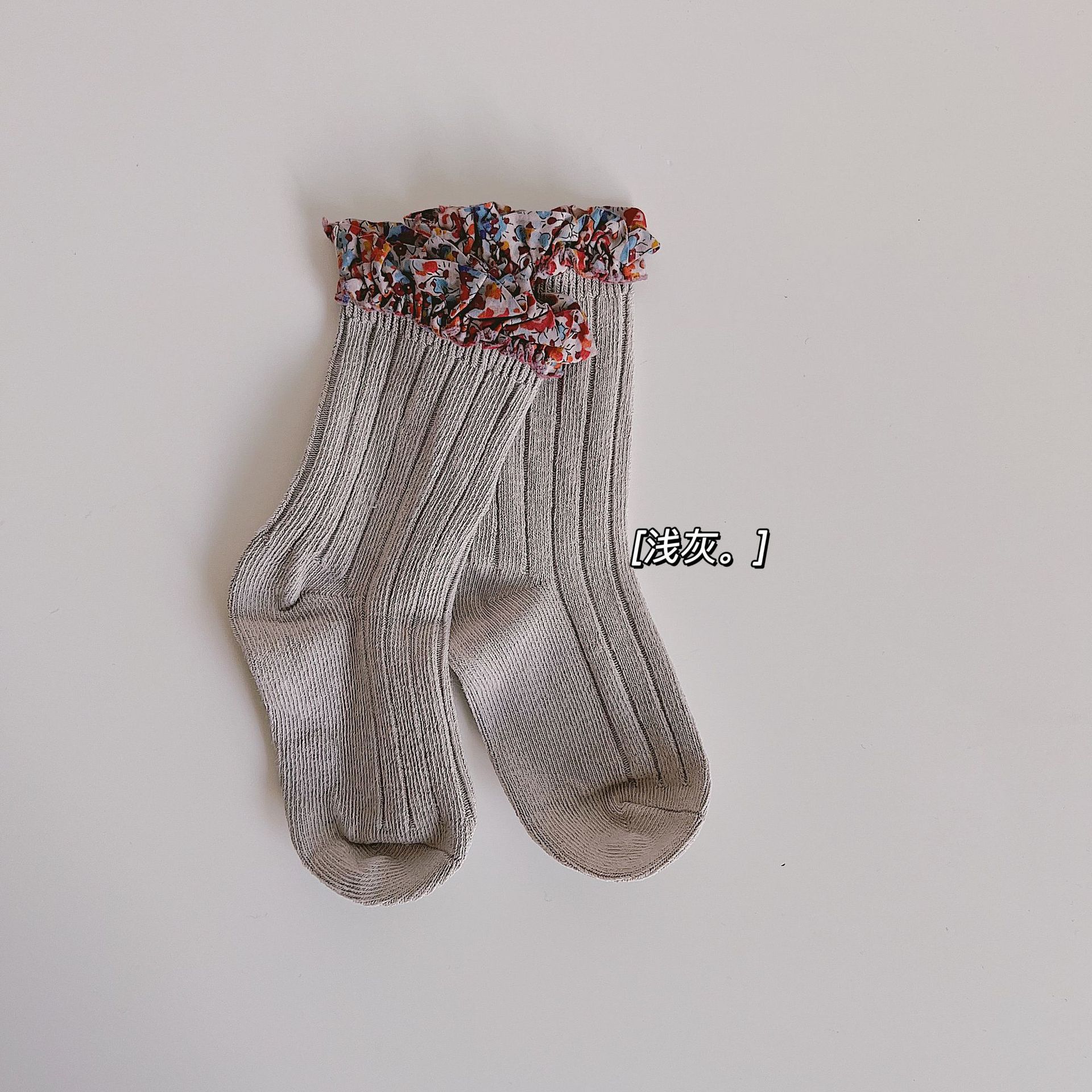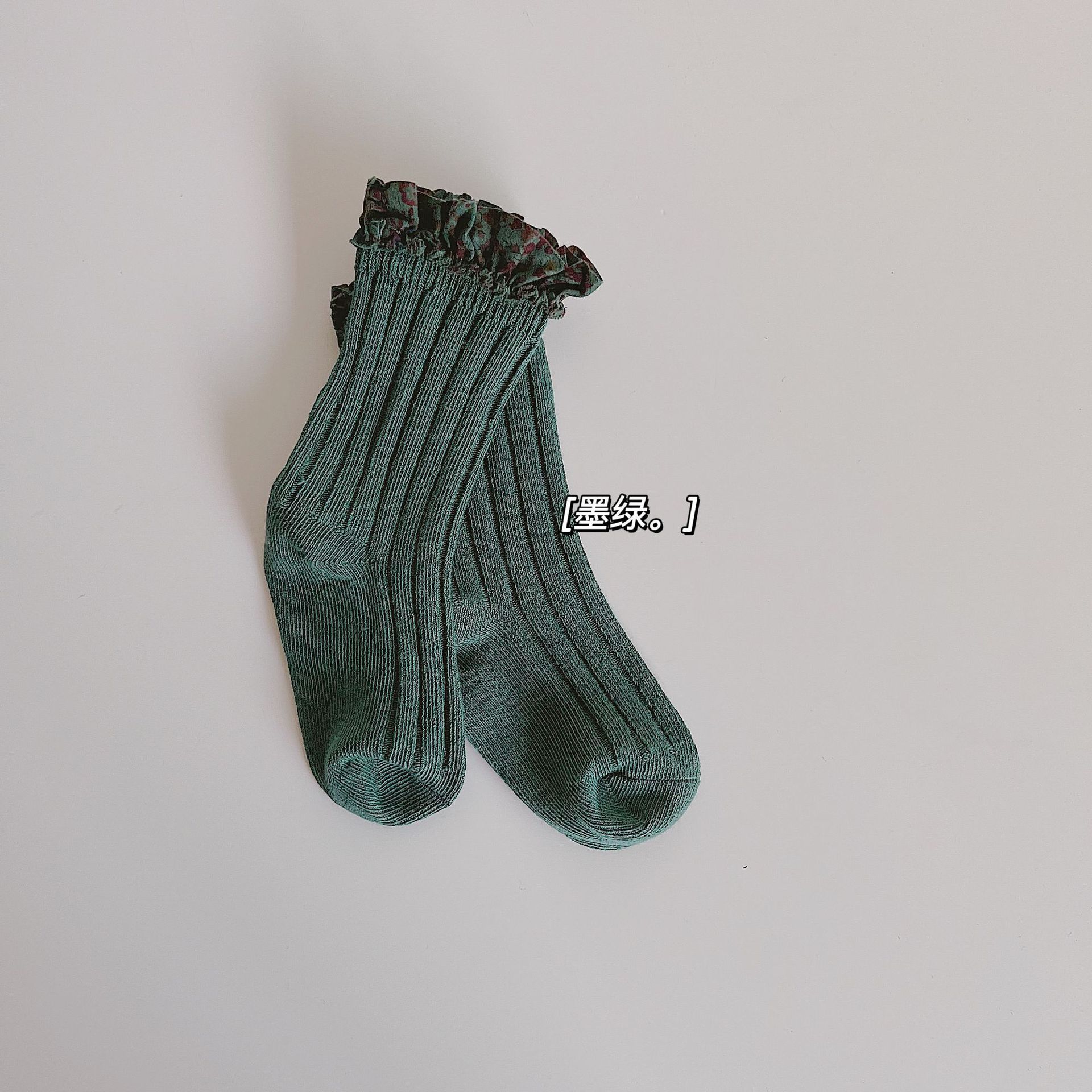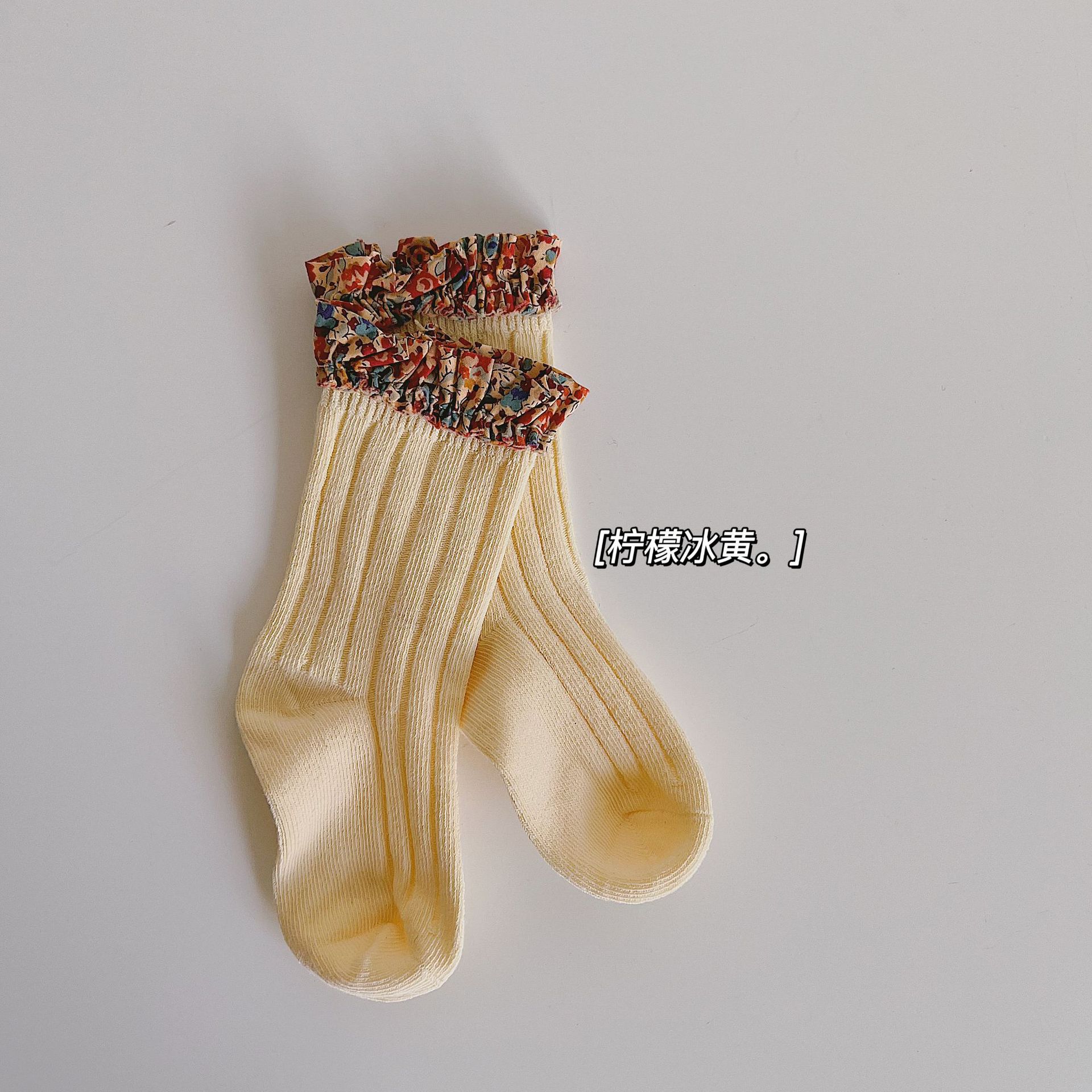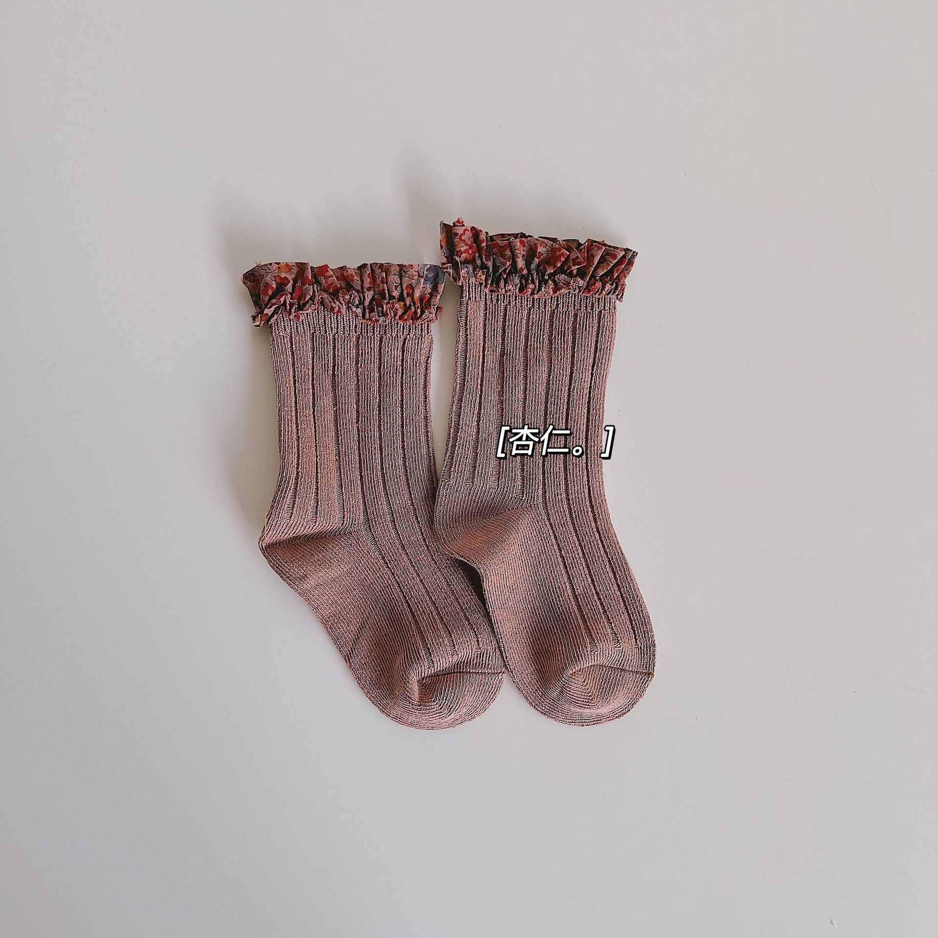 가을 새로운 스페인 스타일 새로운 색상 꽃 레이스 어린이 양말 여자 공주 짧은 양말 여자 더블 바늘 양말 유행스토어 가기