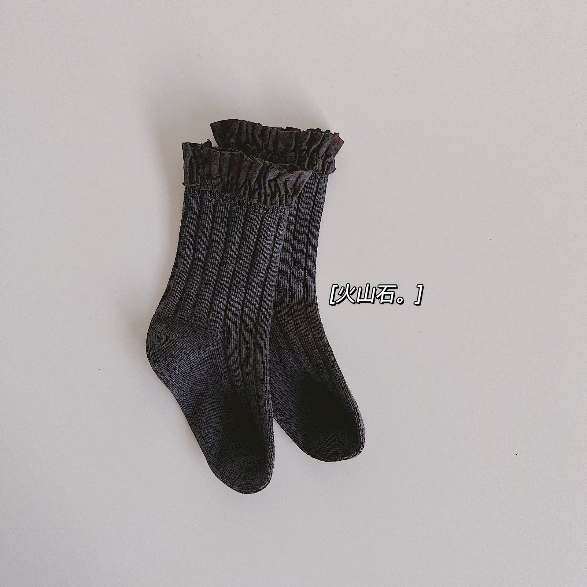 가을 새로운 스페인 스타일 새로운 색상 꽃 레이스 어린이 양말 여자 공주 짧은 양말 여자 더블 바늘 양말 유행