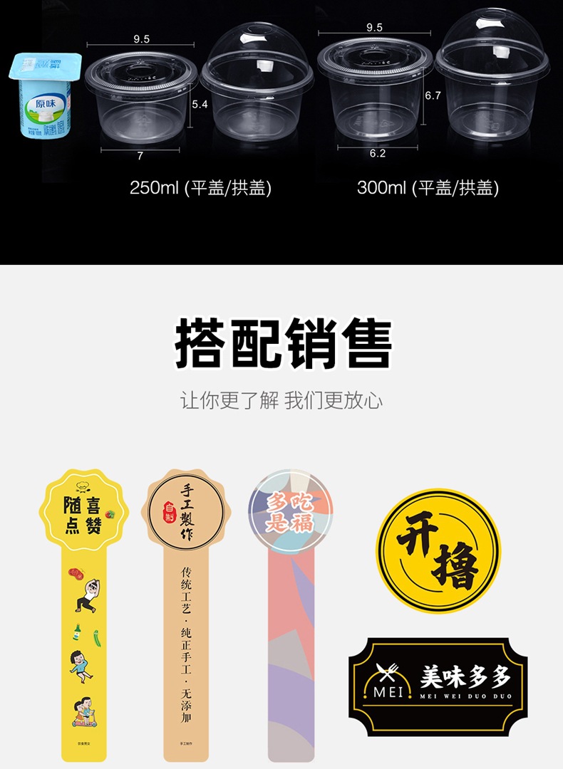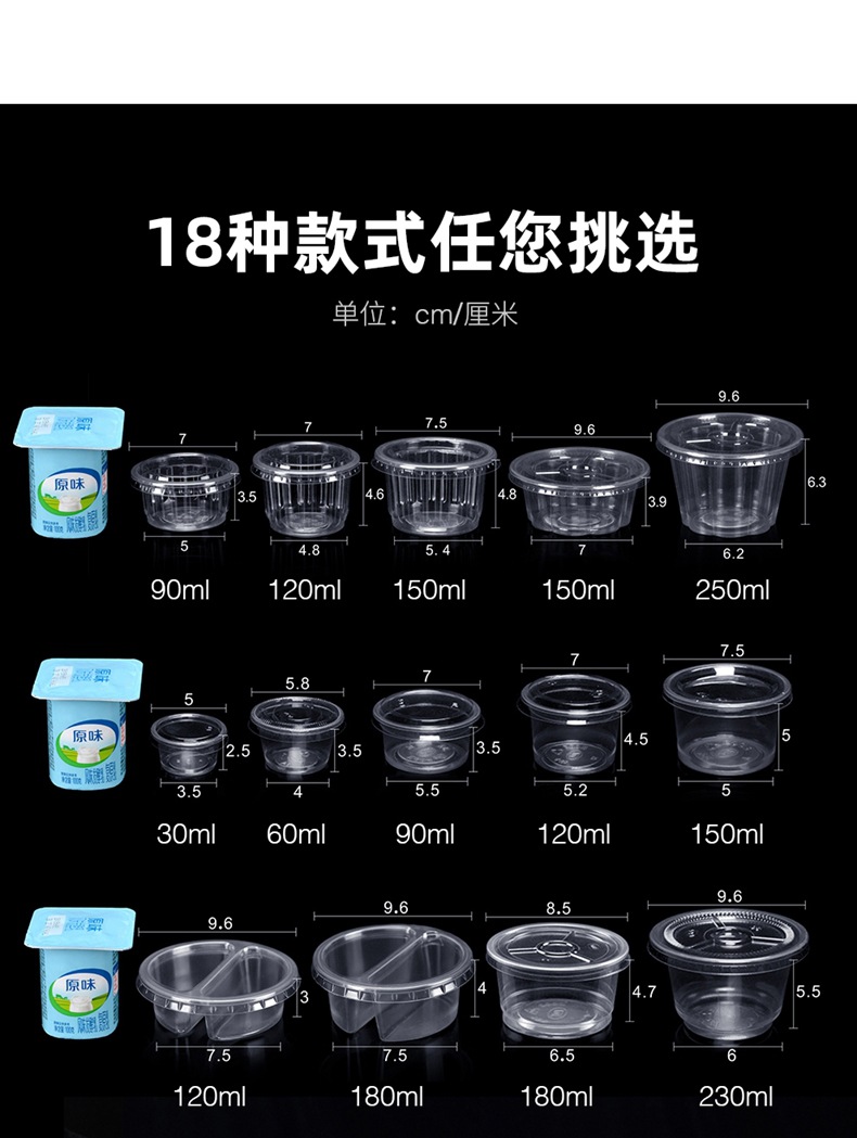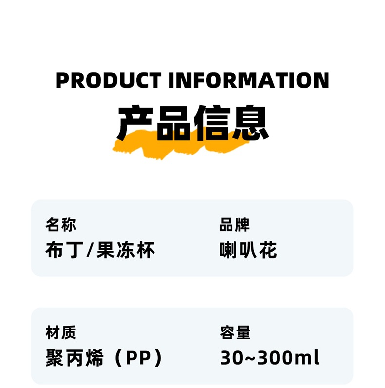 트럼펫 모양 일회용 플라스틱 젤리컵, 더블 스킨 밀크 푸딩컵, 아이스크림 요거트 디저트 포장박스, 1000개