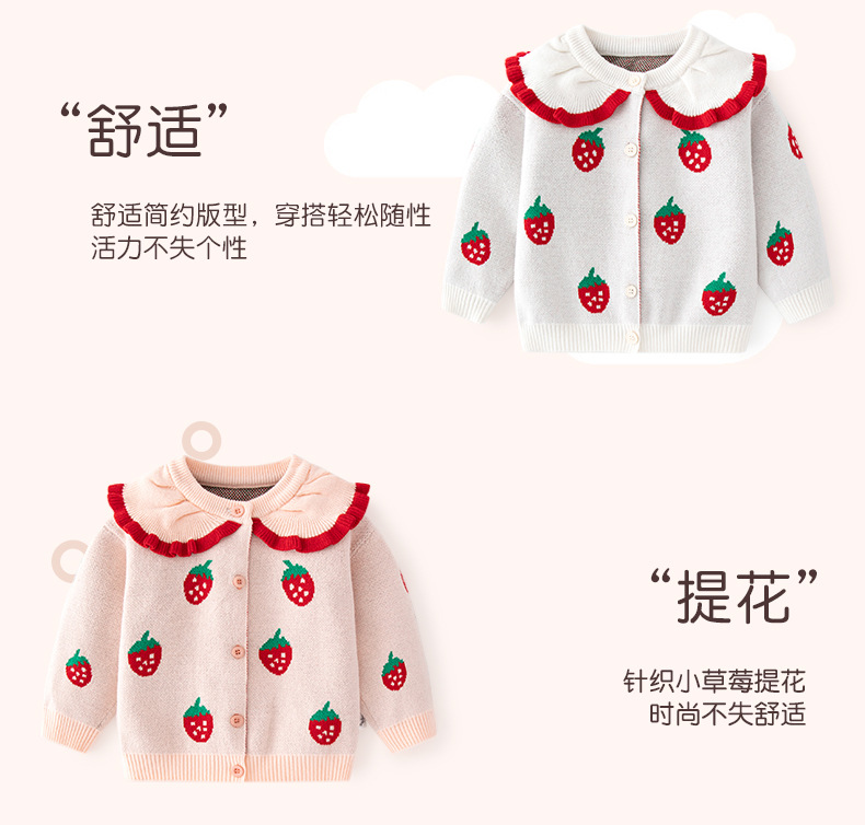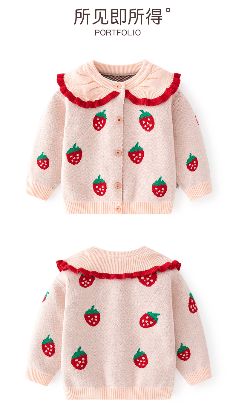 작은 딸기 자카드 소녀 코트 가을, 겨울 카테고리 A 소녀 니트 카디건 작은 공주 목도리 아기 스웨터 카디건스토어 가기