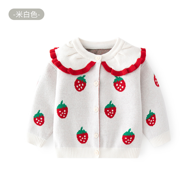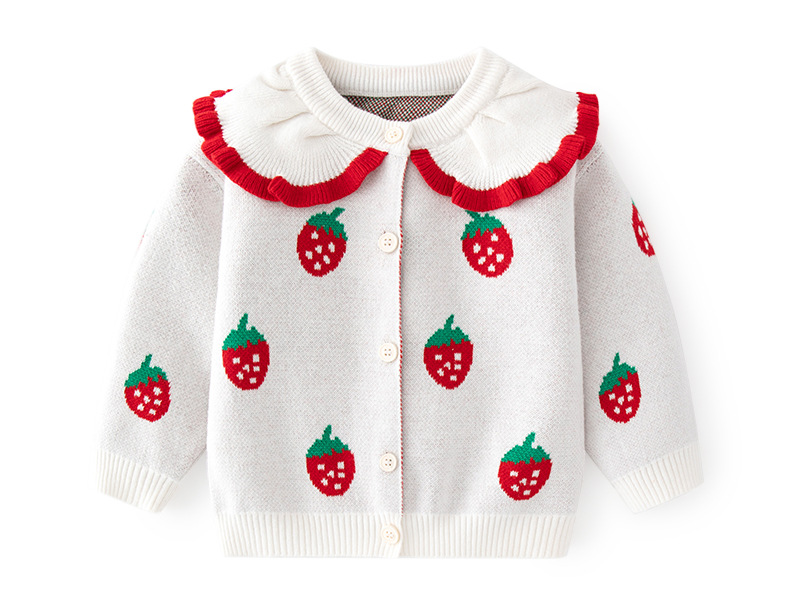 작은 딸기 자카드 소녀 코트 가을, 겨울 카테고리 A 소녀 니트 카디건 작은 공주 목도리 아기 스웨터 카디건
