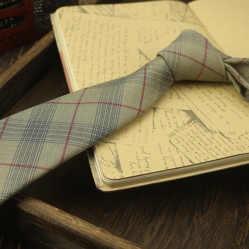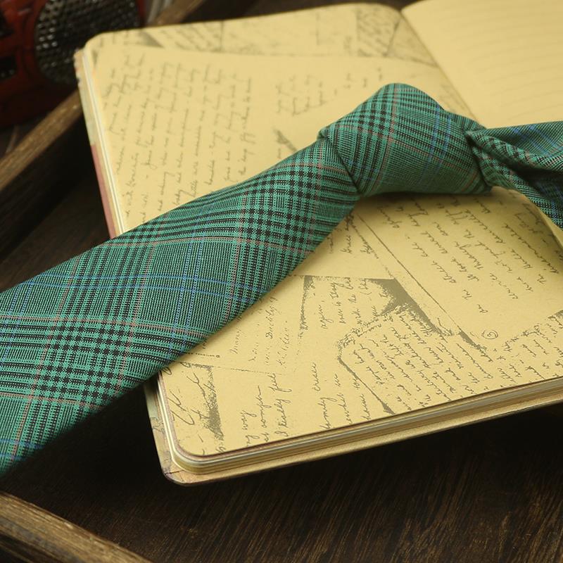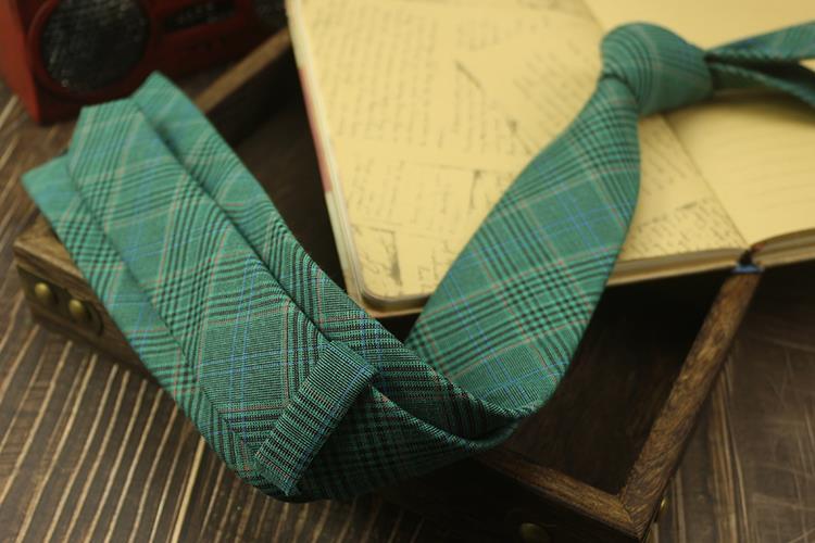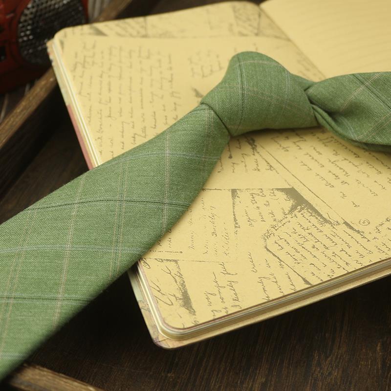 넥타이 남자의 한국식 영어 녹색 격자 무늬 7.5cm 원피스 프로 비즈니스 복고풍 캐주얼 쿨 그레이 모든 매치스토어 가기