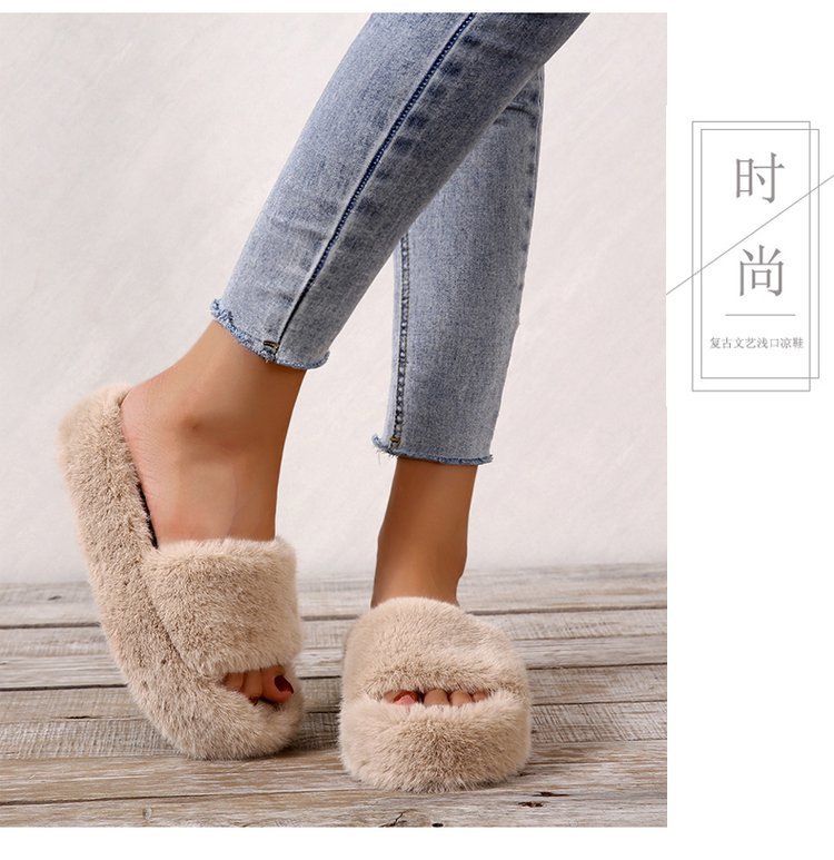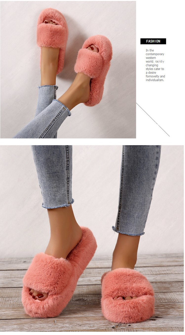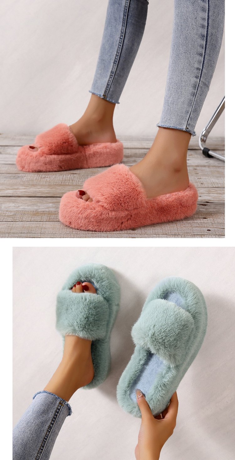 2025 가을 겨울 한국 스타일 ins 소녀 감성 미끄럼 방지 여성용 두꺼운 밑창 대형 사이즈 면 슬리퍼 실내외 겸용 털 슬리퍼스토어 가기