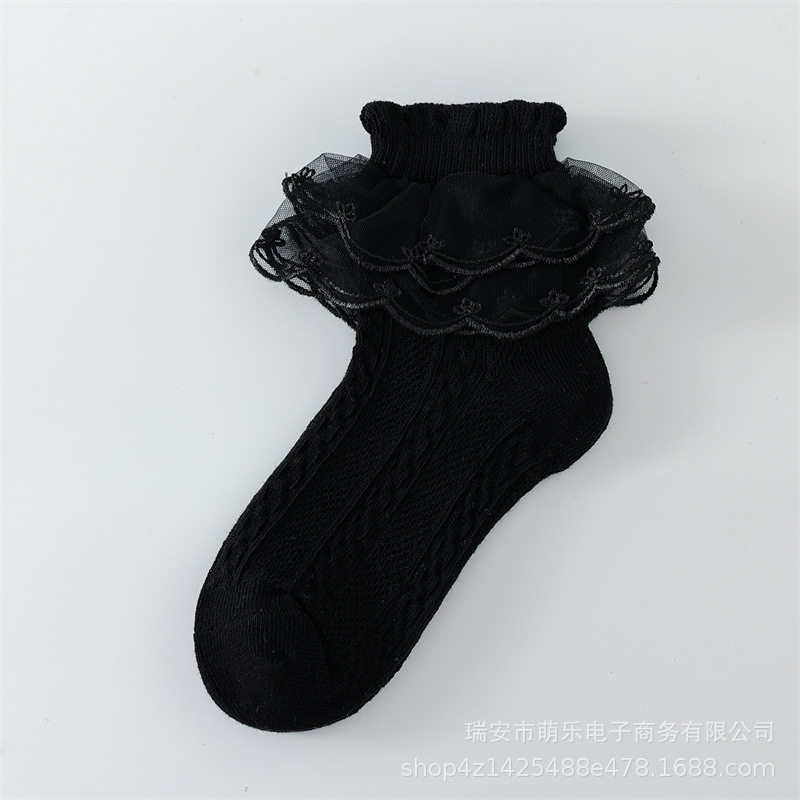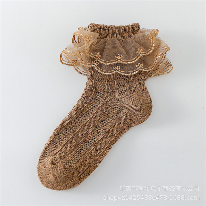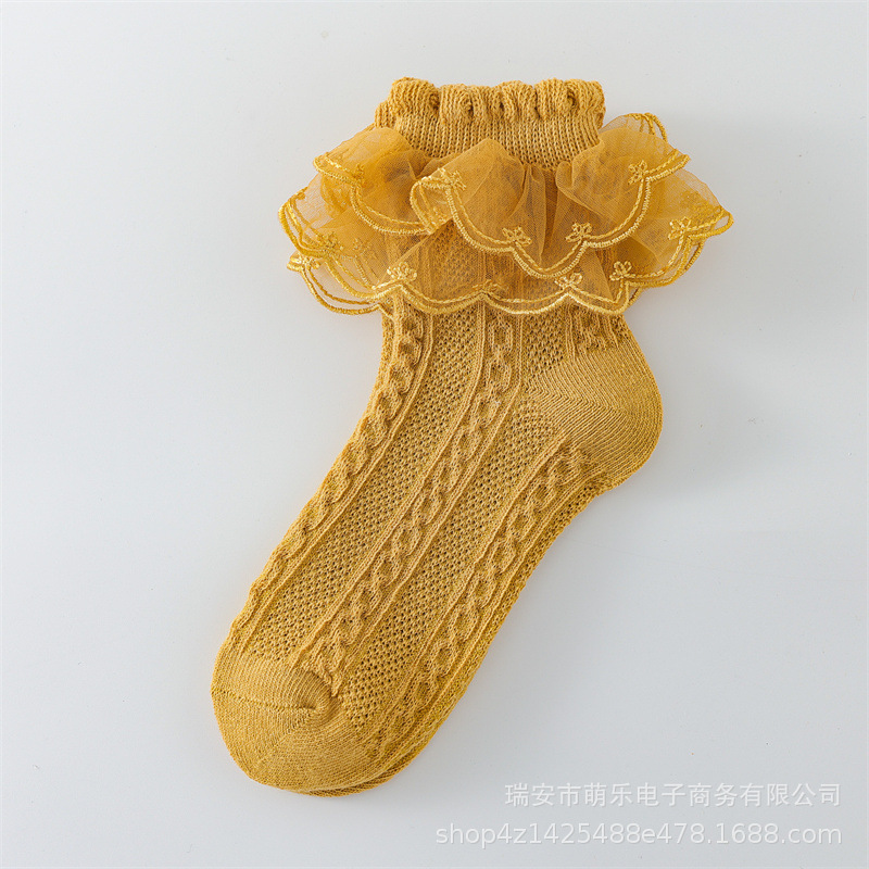 2022 가을과 겨울 새로운면 레이스 소녀 레이스 양말 더블 레이스 공주 양말 1-12 년 라틴 댄스 양말