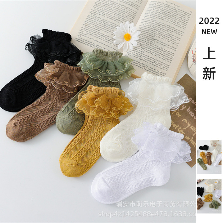 2022 가을과 겨울 새로운면 레이스 소녀 레이스 양말 더블 레이스 공주 양말 1-12 년 라틴 댄스 양말스토어 가기