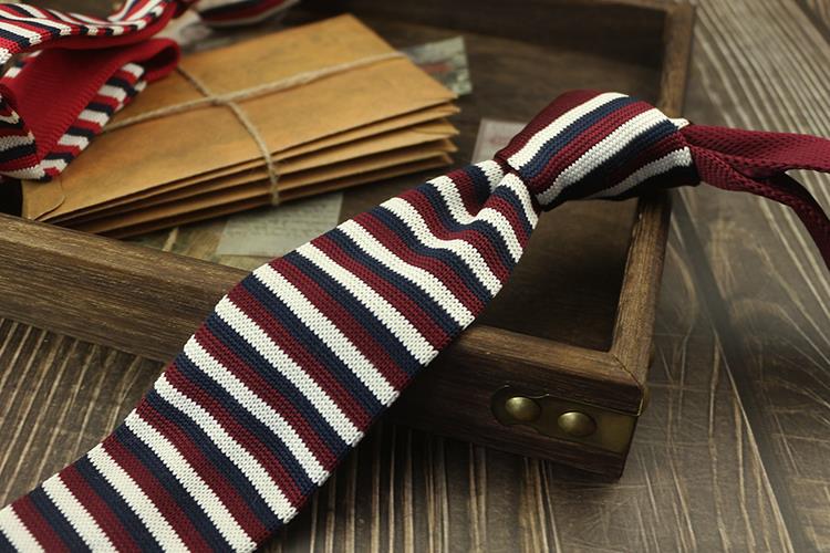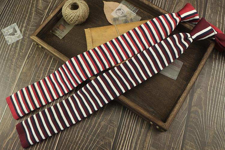 넥타이 남자의 좁은 판 울 한국 스타일 캐주얼 영국 아카데미 스타일 6cm 니트 플랫 헤드 독특한 빨간색과 흰색 얇은 스트립
