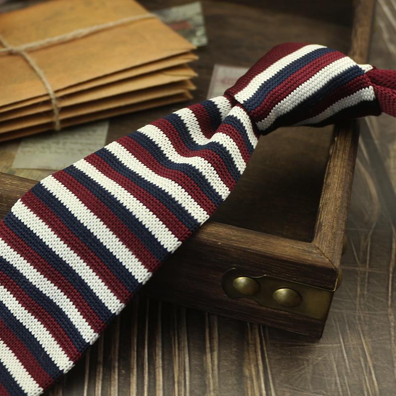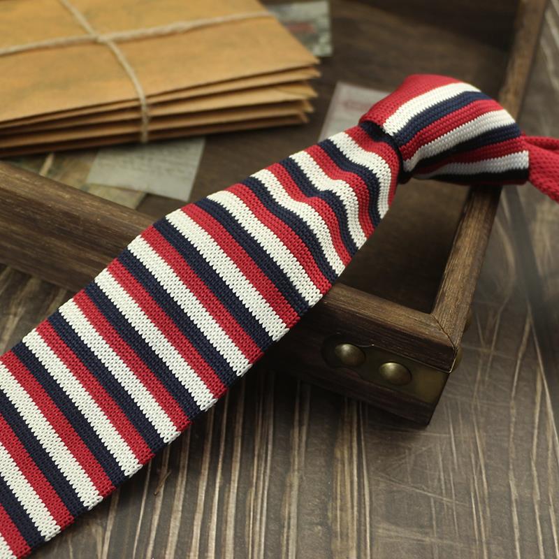 넥타이 남자의 좁은 판 울 한국 스타일 캐주얼 영국 아카데미 스타일 6cm 니트 플랫 헤드 독특한 빨간색과 흰색 얇은 스트립스토어 가기