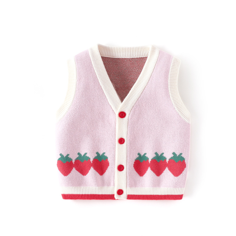 여아 스웨터 조끼 A형 스웨터 조끼 여아 한국식 딸기 브이넥 가디건 가을 순면 상의 아동복스토어 가기