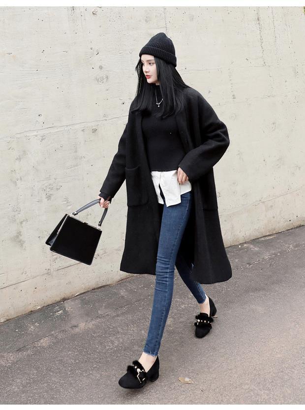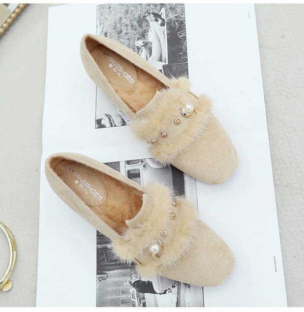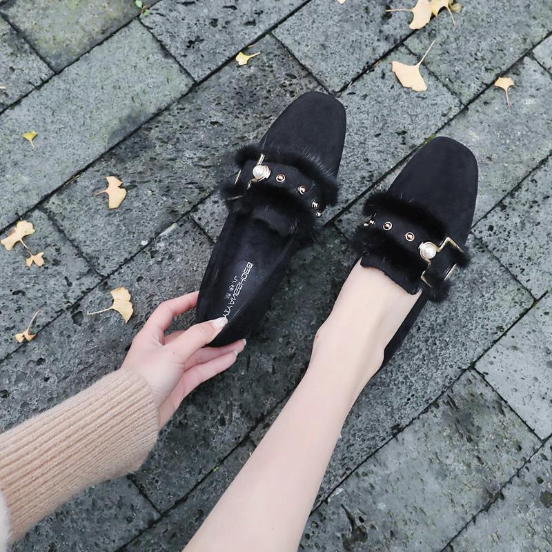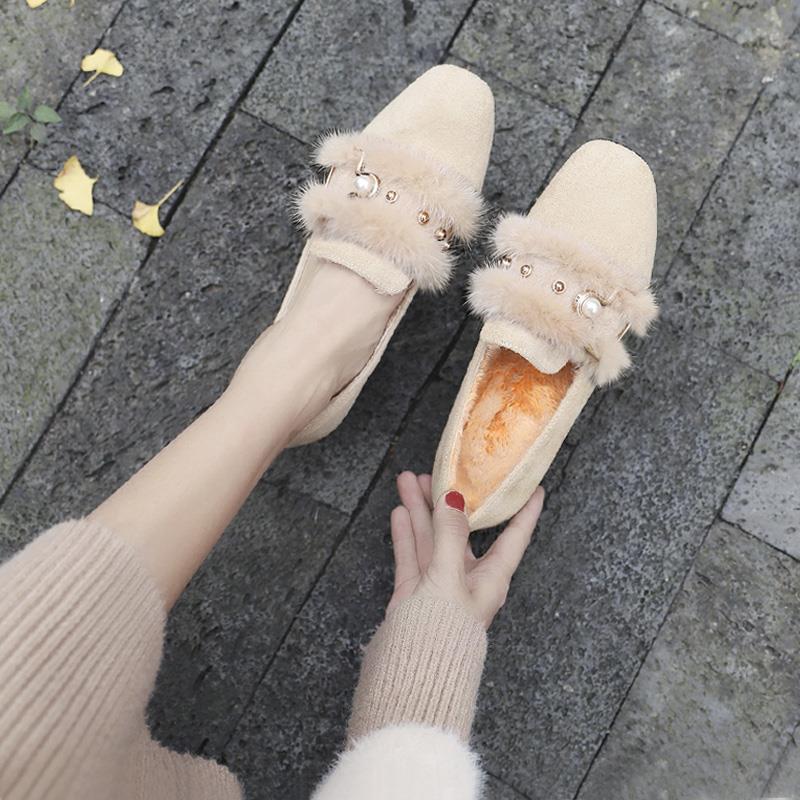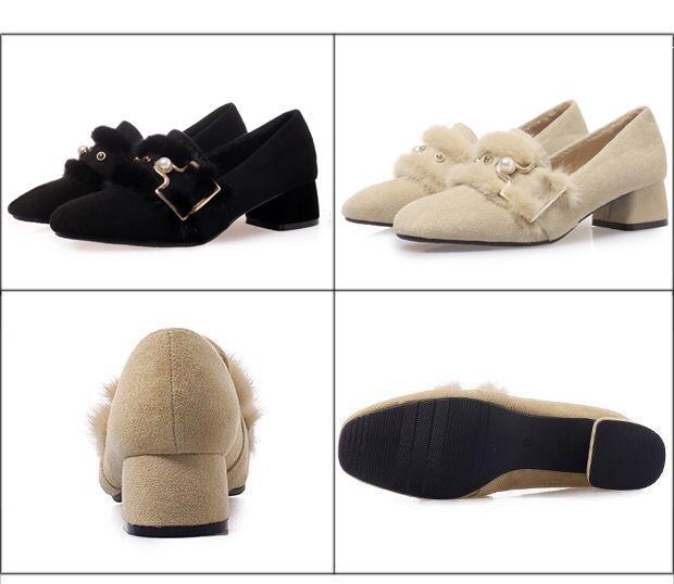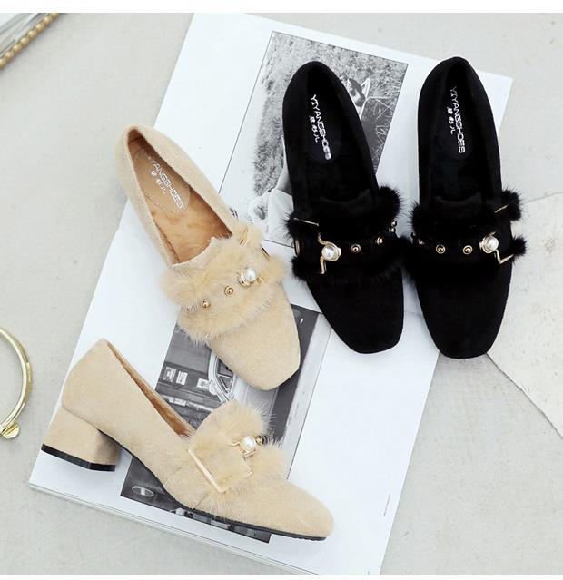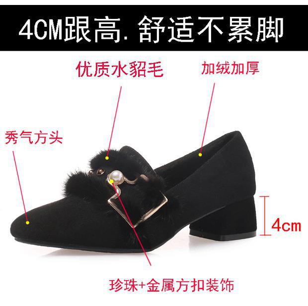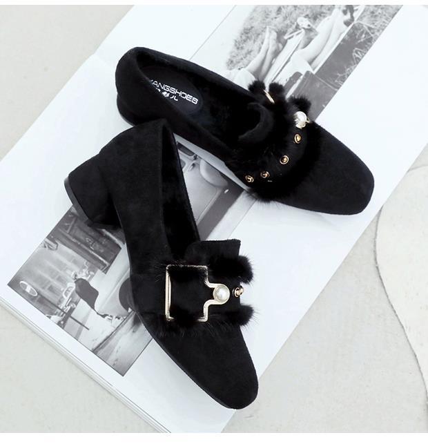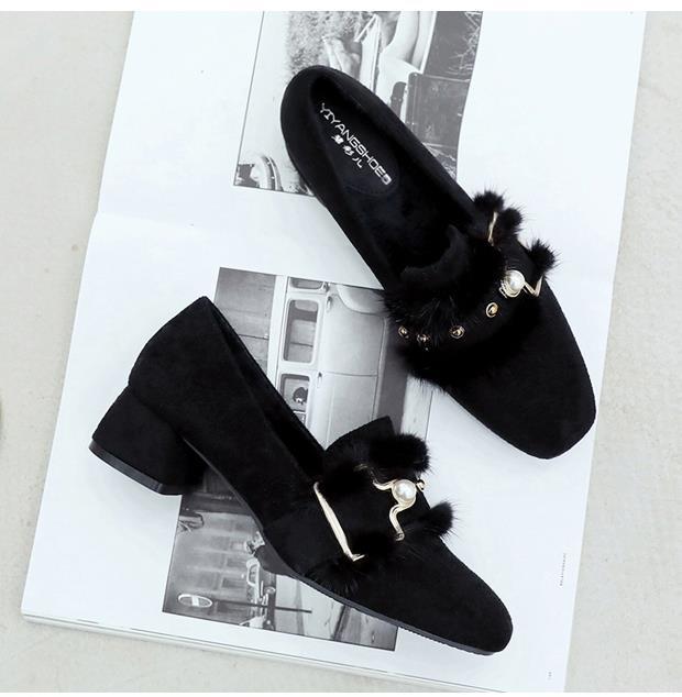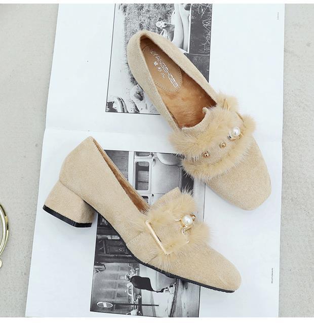 여성용 밍크 모피 싱글 슈즈, 겨울 아우터웨어, 벨벳 겨울 슈즈, 2024 봄 가을 스타일, 미드힐, 두꺼운 굽, 하이힐, 비니 슈즈스토어 가기
