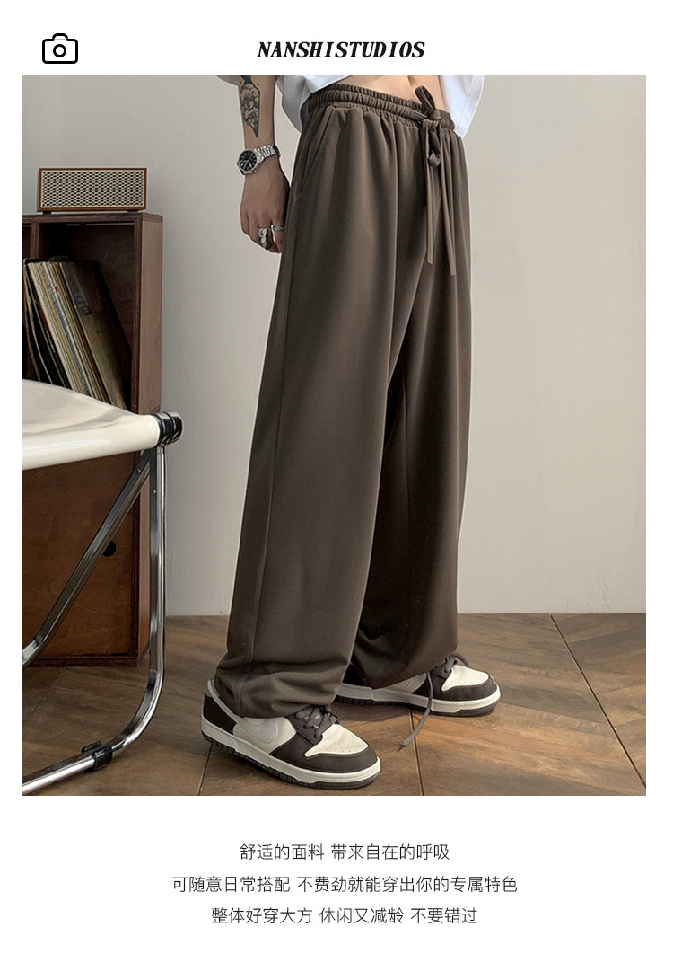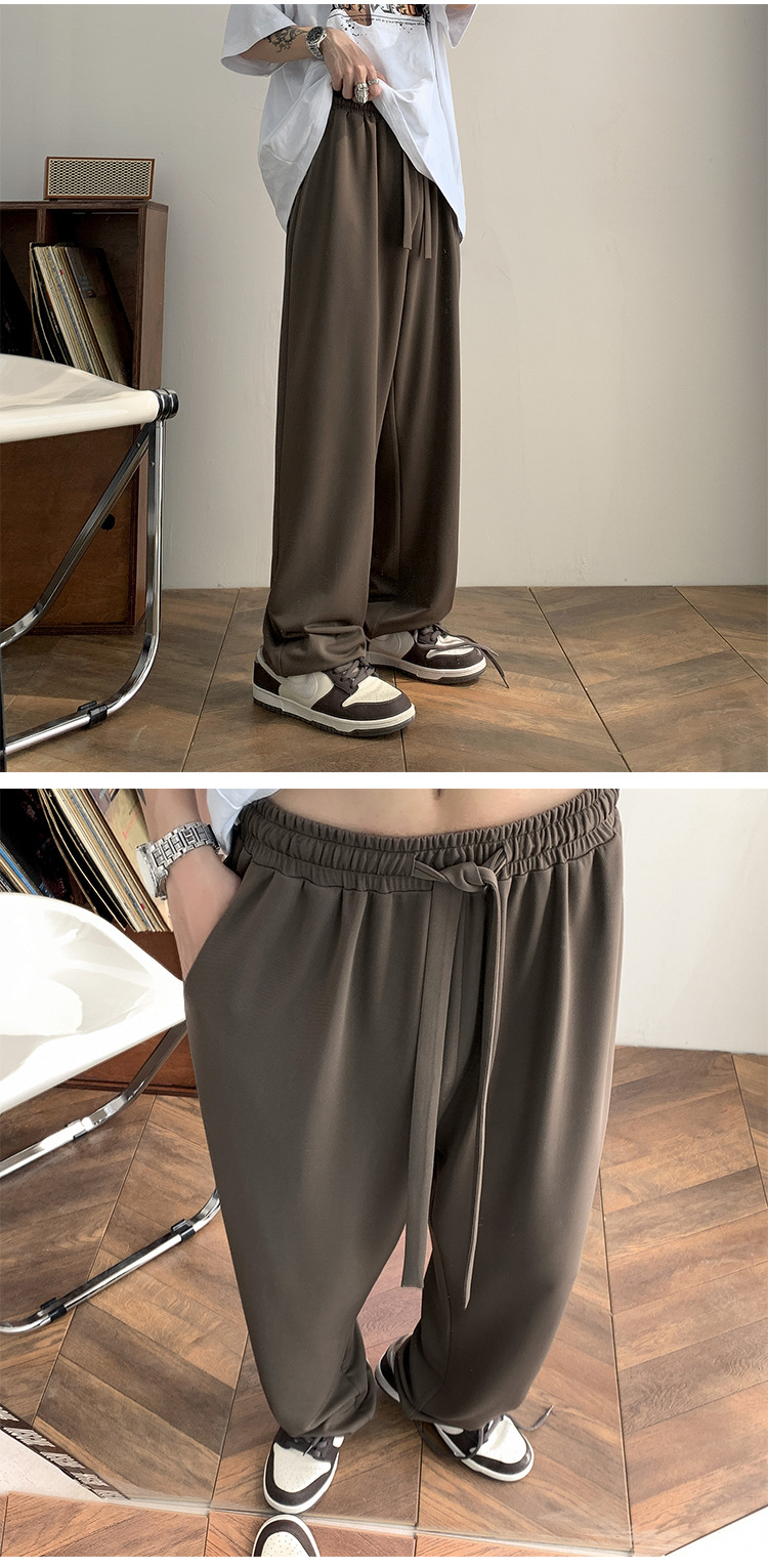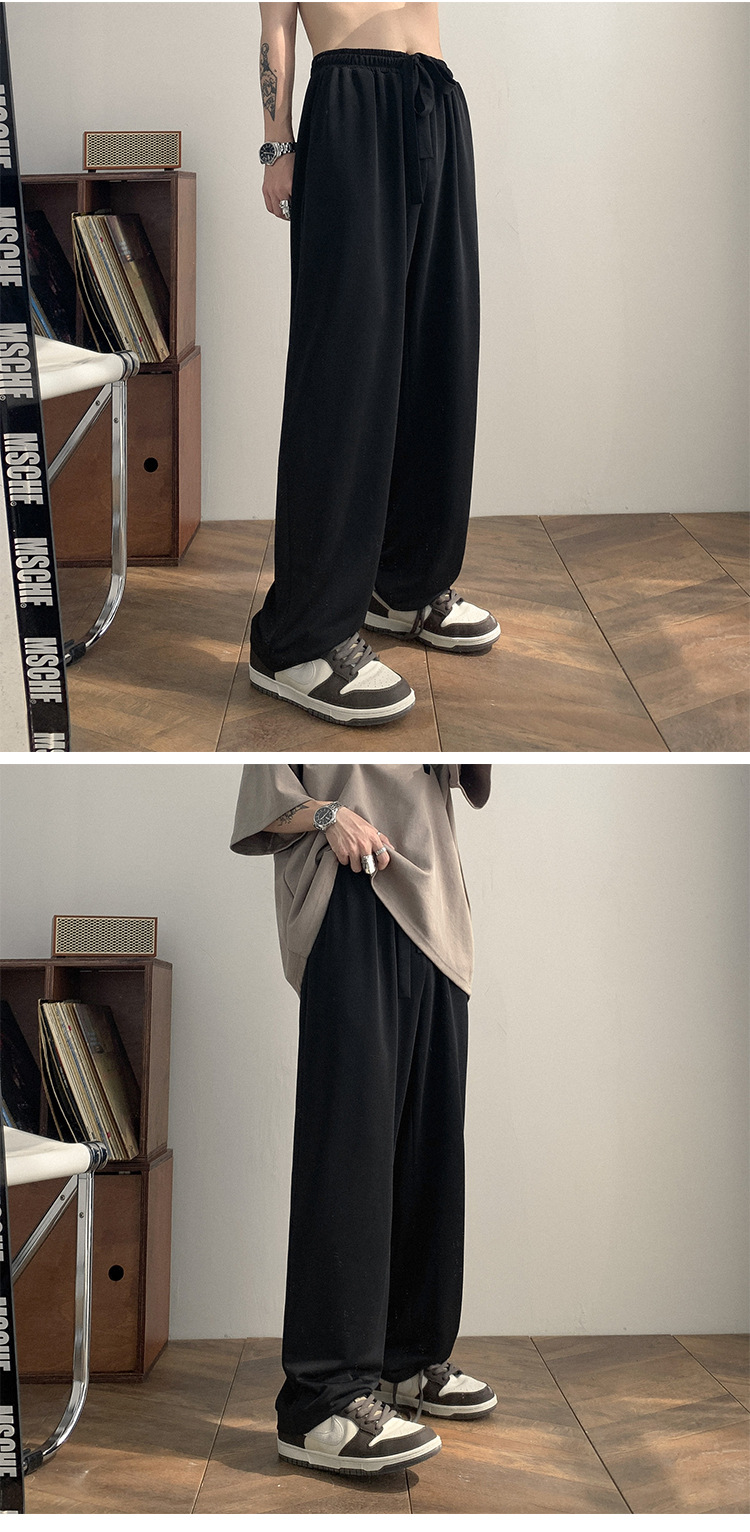하이 스트리트 홍콩 스타일 얇은 와이드 레그 캐주얼 바지에 담긴 남성용 여름 새로운 느슨한 스트레이트 트렌디 브랜드스토어 가기