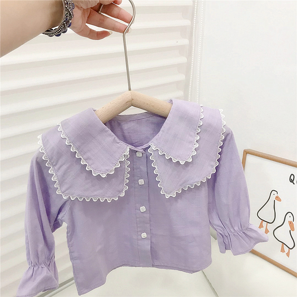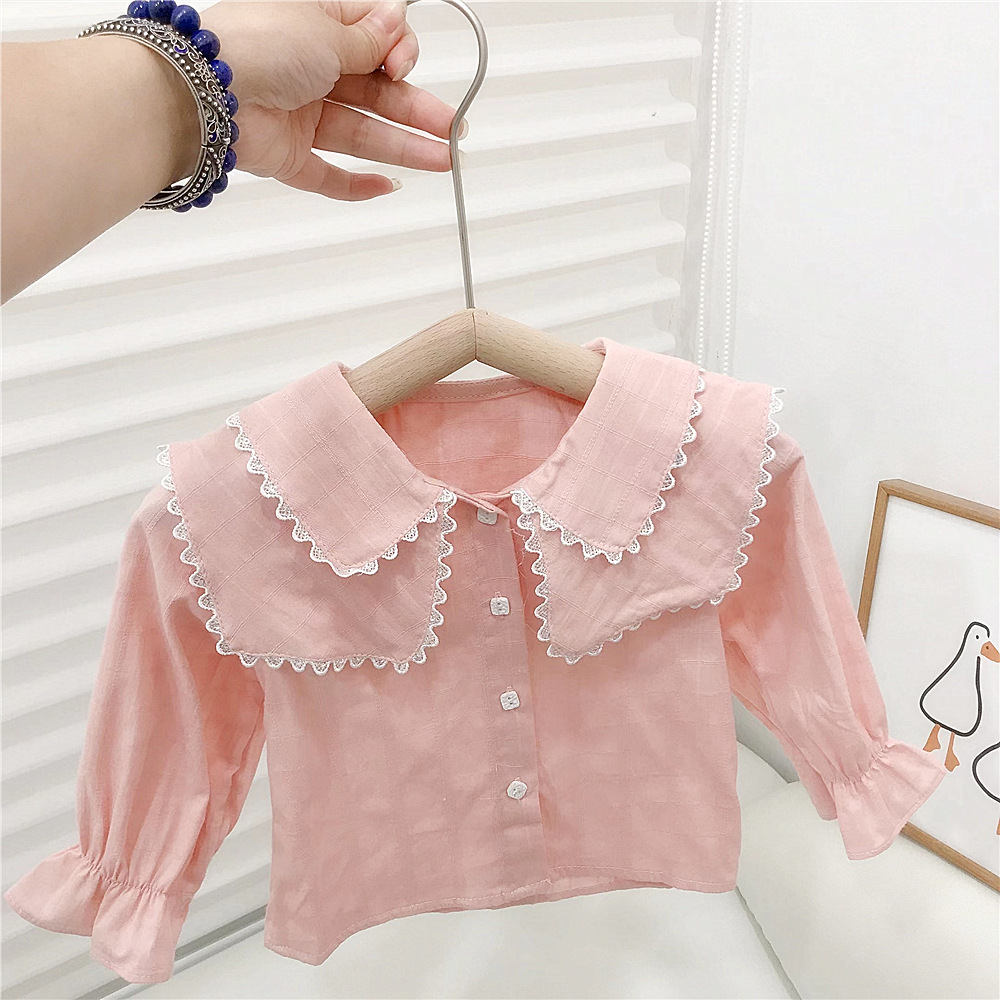 여아 봄과 가을 더블 칼라 웨스턴 스타일 셔츠 2022 신상품 유행 아기 여아 긴 소매 인형 칼라 아기 어린이 셔츠
