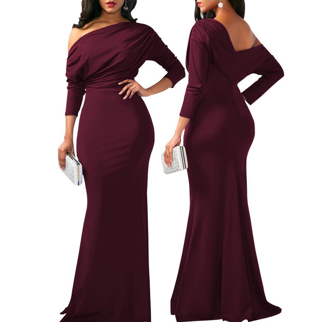 아마존 독립 역 경사 어깨 칼라 원피스 여성의 가을과 겨울 긴 스트랩 우아한 웨이스트베이스 스커트 우아한 스타일