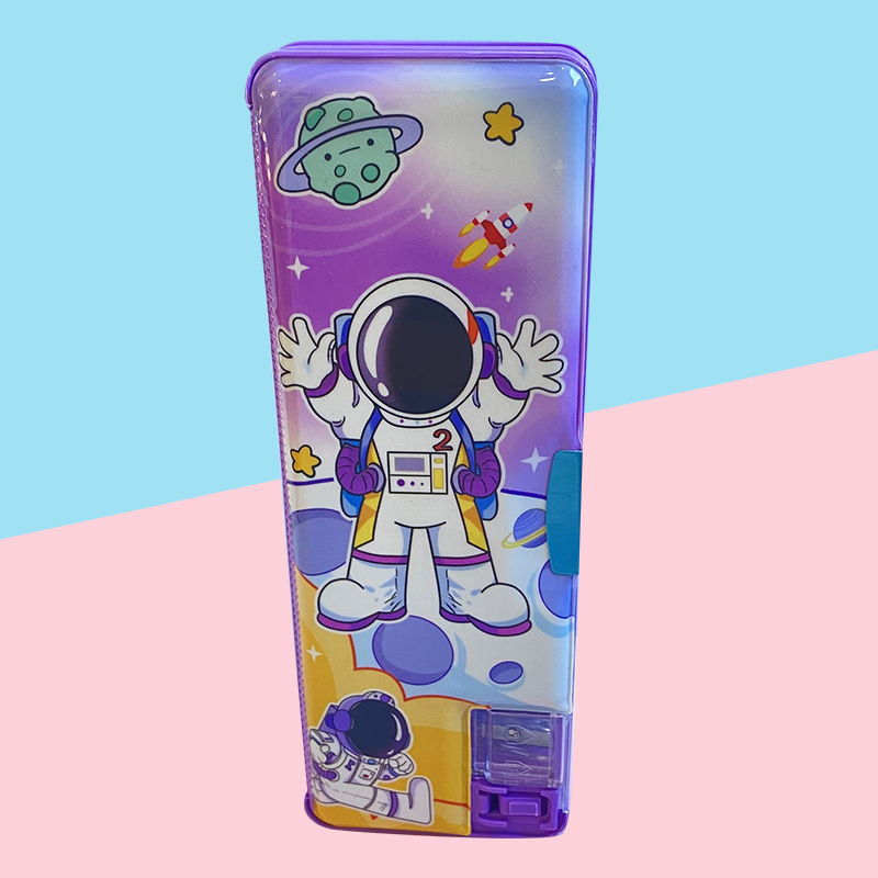 어린이 다기능 문구 상자 연필 깎이 플라스틱 보관 펜 케이스가있는 더블 오픈 만화 필통 초등학생 용스토어 가기