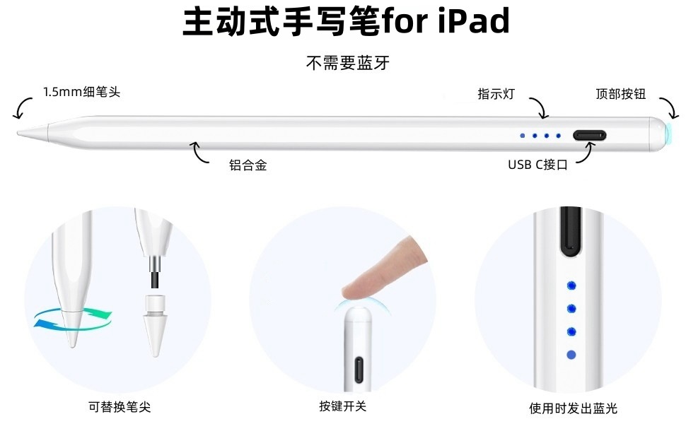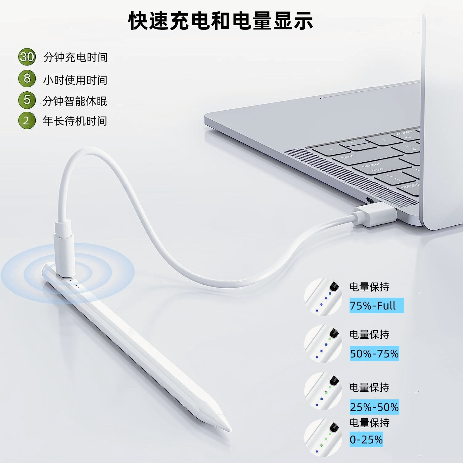 터치스크린 아이패드 용량성 펜 압력 감지 애플 태블릿 스타일러스 펜 그림 필기 게임용 펜 자석 흡착 압력 감지