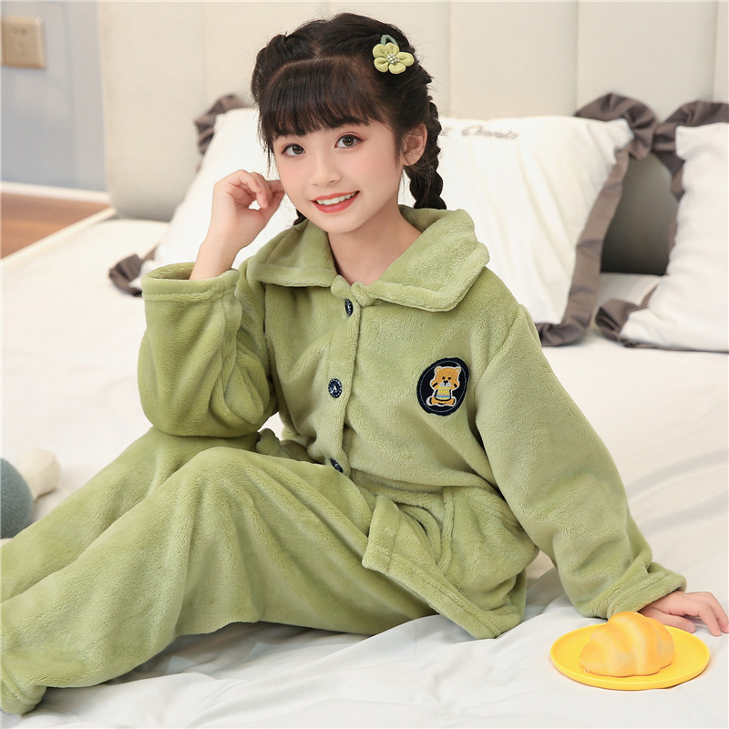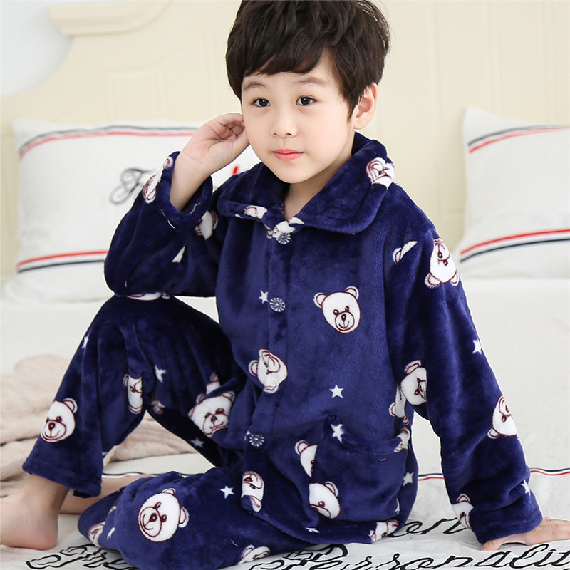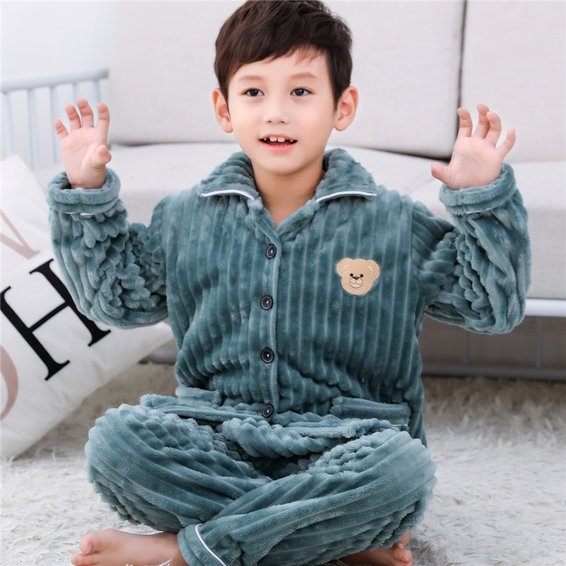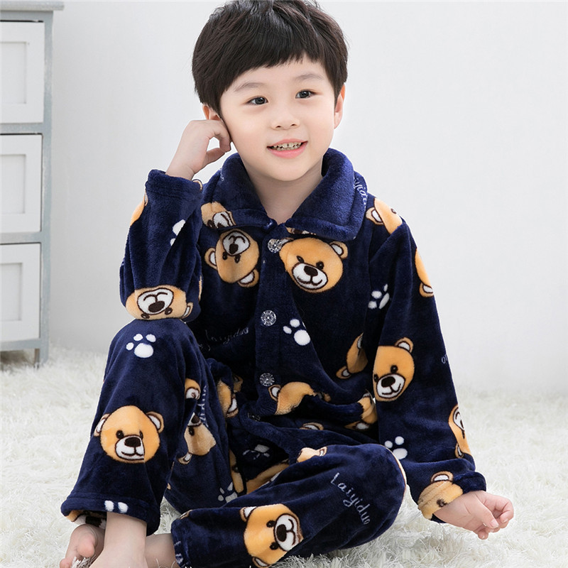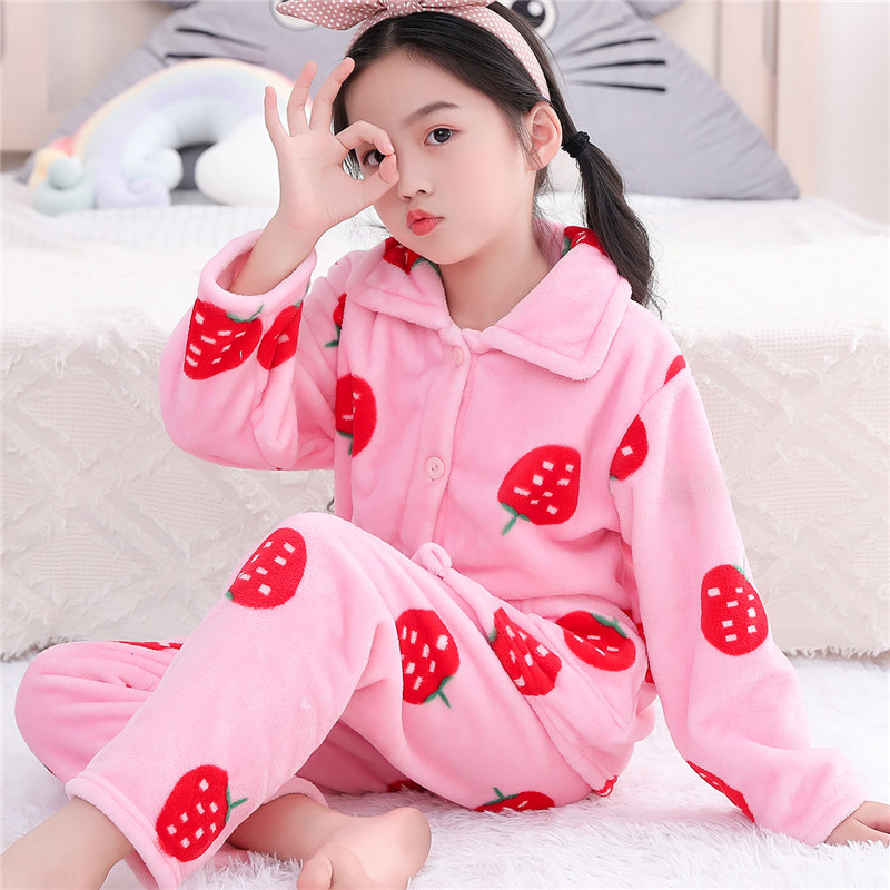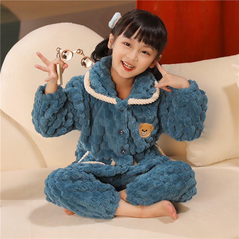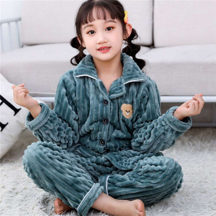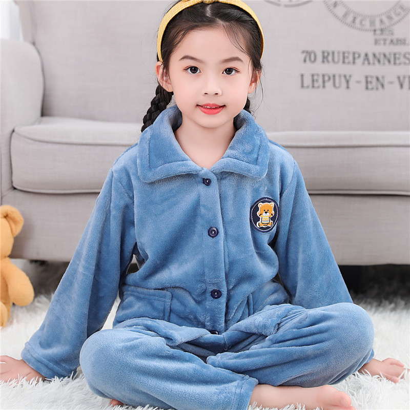 소년과 소녀를위한 어린이 가을과 겨울 플란넬 잠옷 봄 기모 두꺼운 아기의 산호 양털 세트 가정 의류스토어 가기